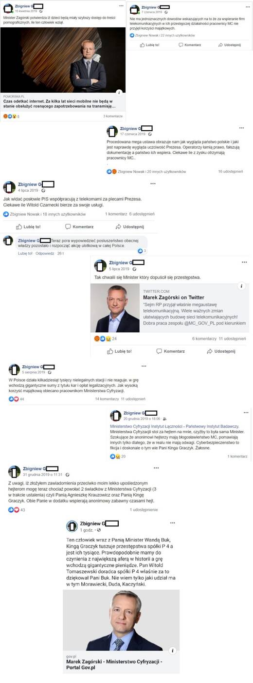Jak wynika z naszych informacji, wniosek który wpłynął w tej sprawie (choć jest to przestępstwo, które powinno być ścigane z urzędu) do prokuratury zawierała kilkadziesiąt bardzo długich stron materiału dowodowego. A ten w zasadzie stale rośnie, bo wystarczy raz na tydzień otworzyć konto Zbigniewa G. na Facebooku, aby zebrać kolejne dowody. Obserwuje go zazwyczaj ok 2000 osób, a publikowane posty są szeroko udostępniane. A to oznacza, że można je traktować jako wypowiedzi publiczne o bardzo szerokim zasięgu.