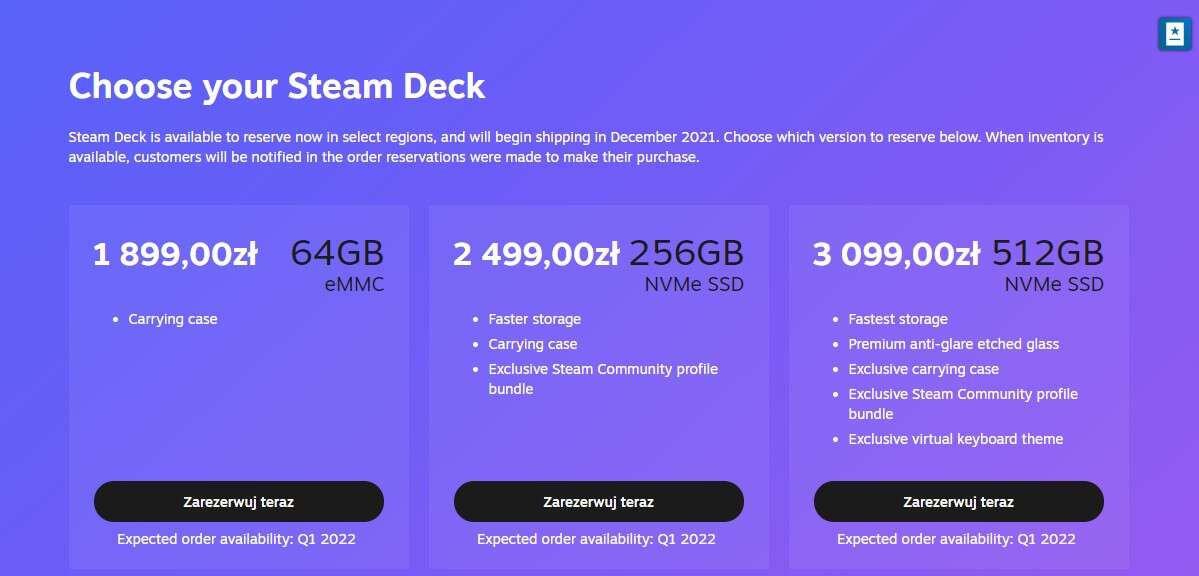 Przedsprzedaż Steam Deck już bowiem ruszyła i każda rezerwacja z wpłaconym depozytem musi zostać „klepnięta”, żeby kupujący miał pewność, że dostanie konsole w następnym roku, czyli zgodnie z planem. Najwidoczniej jednak potwierdzenie nie jest dobrem powszechnym, bo wspomniany eBay wypełnił się ofertami z konsolą Valve o „potwierdzonym statusie przedsprzedaży” w wyższych cenach. Dla przypomnienia tak oficjalne ceny prezentują się w złotówkach (w dolarach wynoszą kolejno 399, 529 i 649$)…
