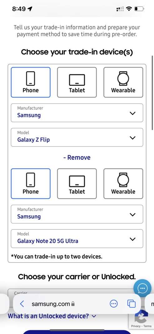 Oprócz tego, podczas rezerwacji nowego Folda odkryto, że można wymienić na niego dwa posiadane mobilne urządzenia. Mogą to być smartfony, tablety, albo smartwatche. Dzięki temu osoby, które bardzo chcą mieć Galaxy Z Fold 3 będą mogły wymienić posiadany sprzęt na ten wymarzony model.