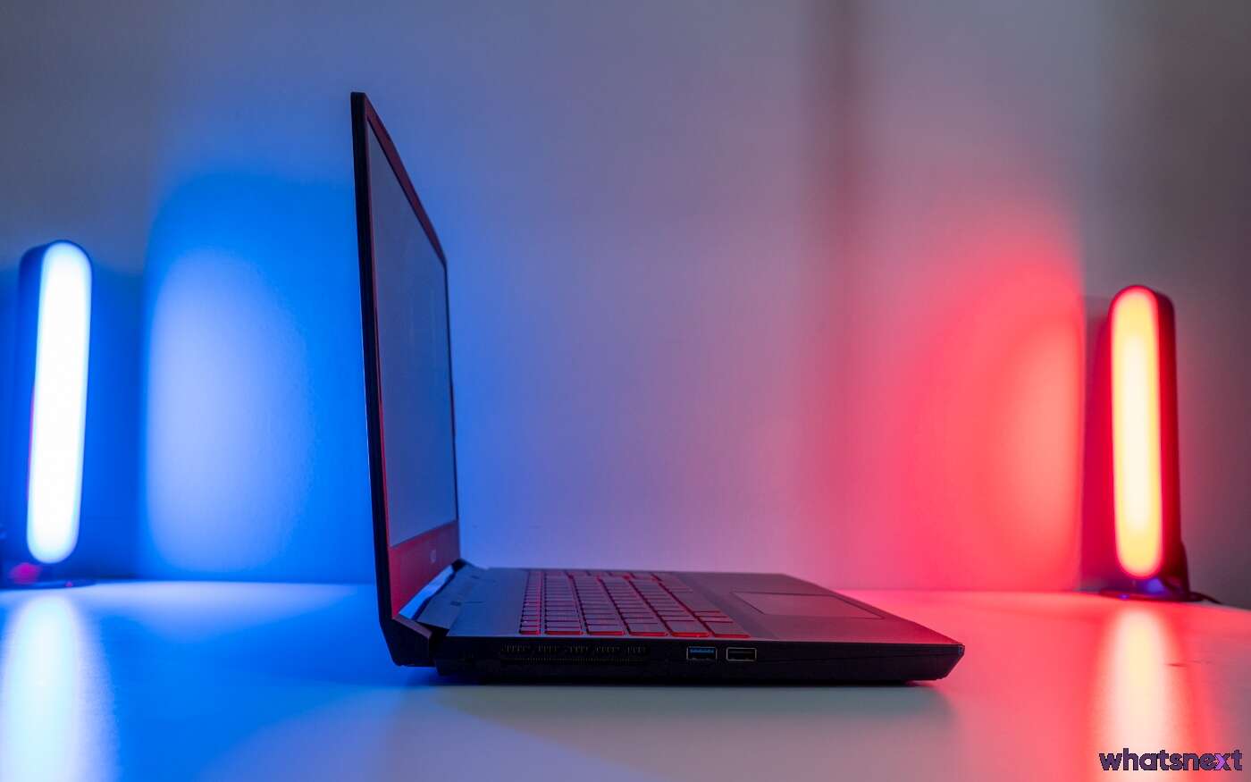 Ekran ma tradycyjny rozmiar 15,6 cala. Jest to model IPS o rozdzielczości 1920 x 1080 i 144 Hz odświeżaniu. Ramki nie są wybitnie grube, ale na pewno też nie są cienkie. Sama jakość matrycy już na pierwszy rzut oka nie wypada najlepiej. Szybkie testy pokrycia kolorów to potwierdzają – 66% sRGB, 50% AdobeRGB i 49% DCI-P3 to dosyć słabe wyniki. Dla grafików laptop raczej się nie sprawdzi, ale gracze powinni raczej być z matrycy zadowoleni.