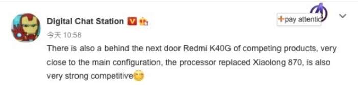 Zwiastun Redmi K40, Redmi K40 Gaming Edition, Redmi K40, SoC Redmi K40