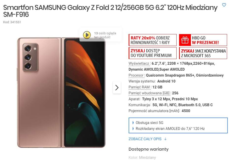Promocja trwa do 31 lipca, czyli do soboty. Pamiętajcie, że jeśli chcecie odebrać voucher przy zakupie ratalnym, to trzeba wybrać dostawę Galaxy Z Fold 2 do domu.