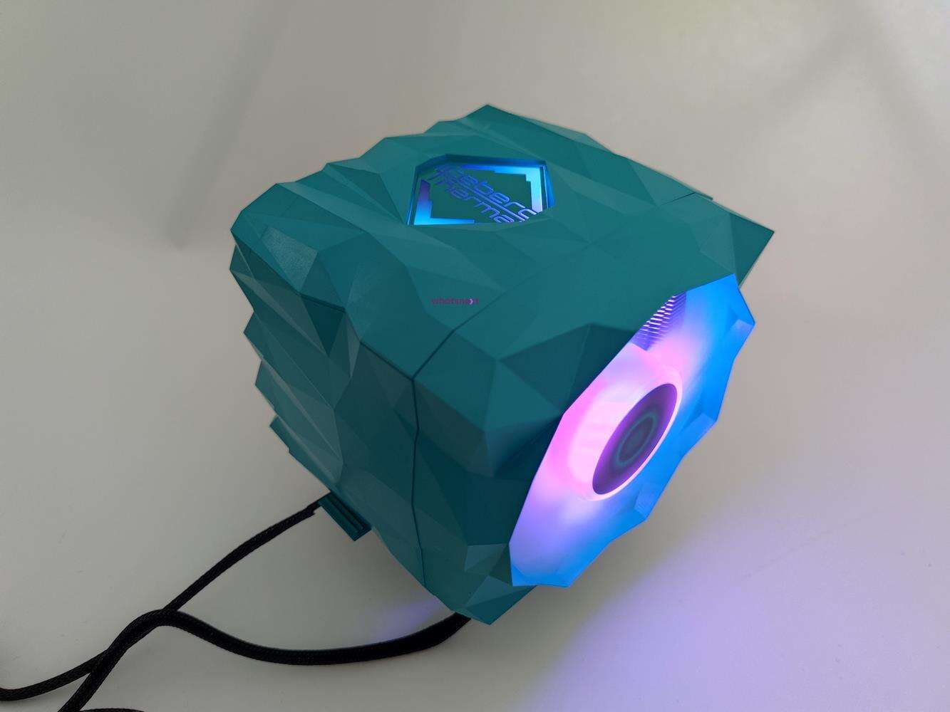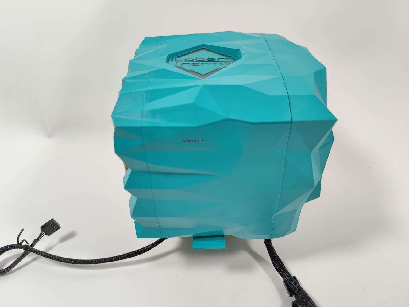 Iceberg Thermal IceSLEET X7 Dual wygląda na pewno ciekawie. Przedni wentylator oraz top ma podświetlenie ARGB, które bardzo dobrze się prezentuje. Kontrowersyjny jest wygląd całej obudowy radiatora, która ma kolor moim zdaniem morski (choć na kolorach się nie znam). Raczej do niczego w obudowie zbytnio nie będzie on pasował, choć przyznam że nie wygląda to źle – na pewno przyciąga wzrok i może się podobać.