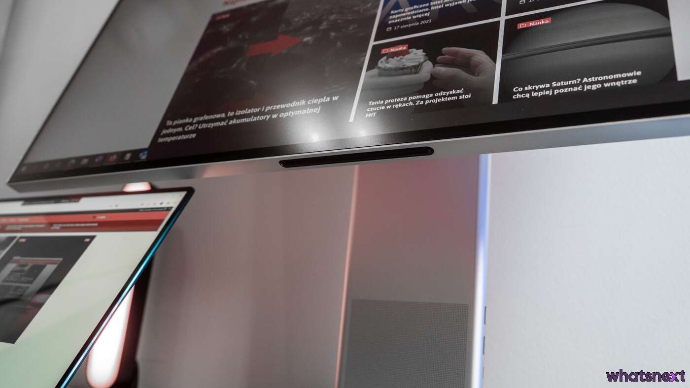 To zasługa prostego wzornictwa oraz genialnego wykonania. Obudowa w całości jest aluminiowa. Zarówno jeśli chodzi o obramowanie ekranu, jak i solidną stopkę. Do tego mamy ładne, połyskujące wstawki oraz bardzo cienkie ramki wokół wyświetlacza.