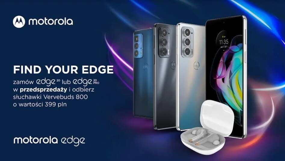 Żeby zachęcić do kupna przygotowano także atrakcyjny gratis. Do zestawu ze smartfonem ( Edge 20 lub Edge 20 Pro) dorzucane będą słuchawki bezprzewodowe Motorola vervebuds 800 o wartości 399 zł. Jest to więc bardzo przyjemny prezent. Oba urządzenia do regularnej sprzedaży wejdą we wrześniu. A jeśli ciekawi Was ich specyfikacja, to zajrzyjcie tutaj.