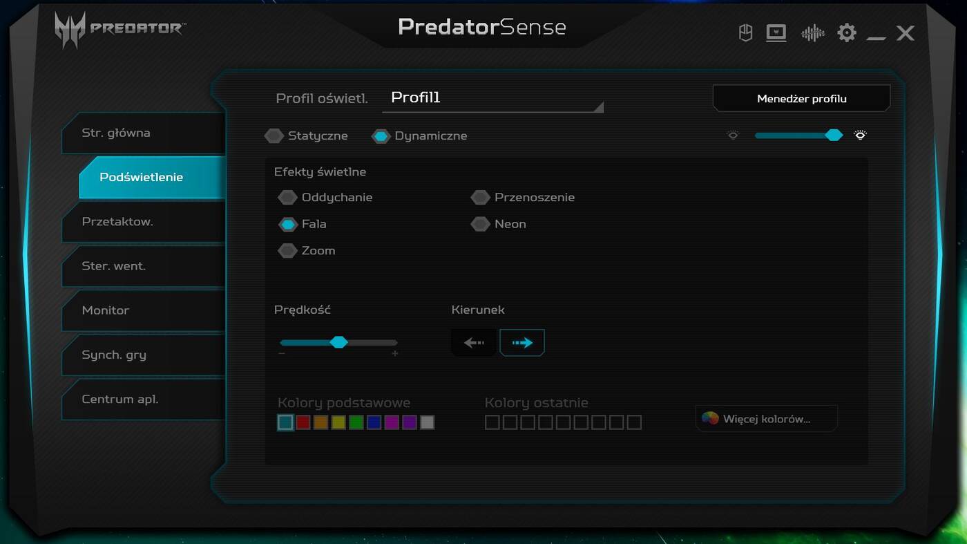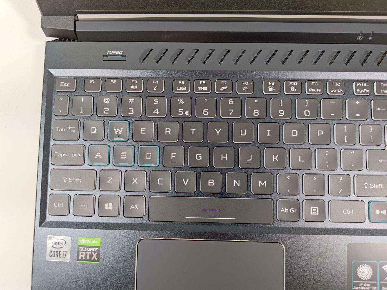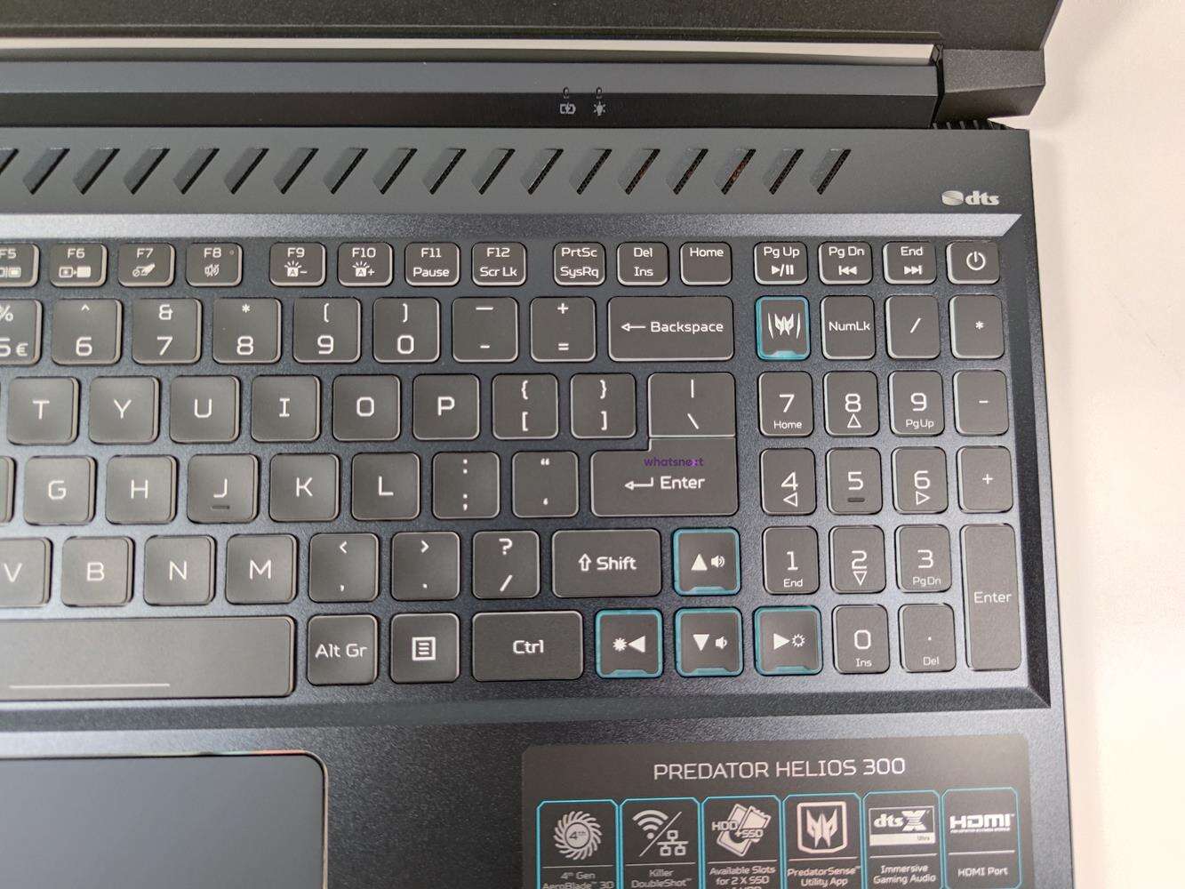 Klawiatura ma 4-strefowe podświetlenie RGB, którym możecie sterować poprzez oprogramowanie. Klawisze WSAD, strzałki oraz przycisk PredatorSense są wyróżnione, co powinni docenić gracze. Ten ostatni umieszczony jest w miejscu, gdzie zwykle znajduje się Num Lock, co może mylić. Na pewno plusem jest obecność właśnie klawiatury numerycznej. Kolejny ciekawy przycisk to Turbo, który włącza przetaktowanie GPU oraz maksymalne obroty wentylatorów, co ma zapewnić maksymalną wydajność. Sama klawiatura dobrze sprawdza się w praktyce i pisanie na niej jest dosyć wygodne.