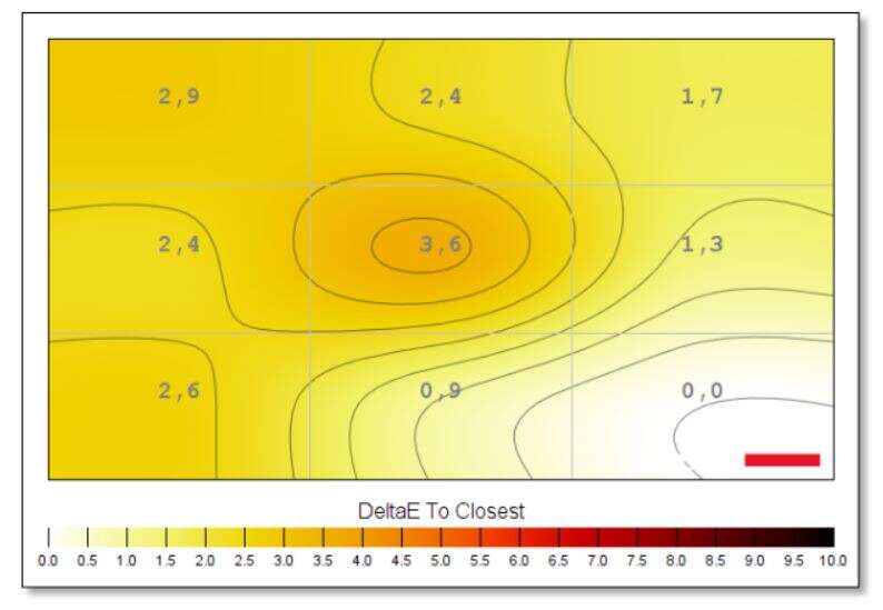 Niestety matryca N156HRA-EA1 nie wypada najlepiej w testach. Pokrycie kolorów jest bardzo słabe, a gamma odleciała w kosmos. Wyniku 2.8 dawno tutaj nie widziałem. Maksymalna jasność równa 252,1 cd/m^2 jest również dosyć niska. Za to kontrast 1070:1 jest pozytywną stroną. Punkt bieli to 7700K, czyli daleko od ideału. Niejednorodność kolorów wypada dobrze, natomiast podświetlenia mogła by być trochę lepsza, aczkolwiek wiele laptopów tutaj jeszcze gorzej wypada. Średnia Delta-E to 1,46, czyli jest całkiem nieźle. Niestety w ogólnym rozrachunku matryca wypada dosyć słabo. Co ciekawe mocniejsze modele Predatra Helios 300 mają lepsze matryce, które w testach prezentują znacznie lepsze wyniki.