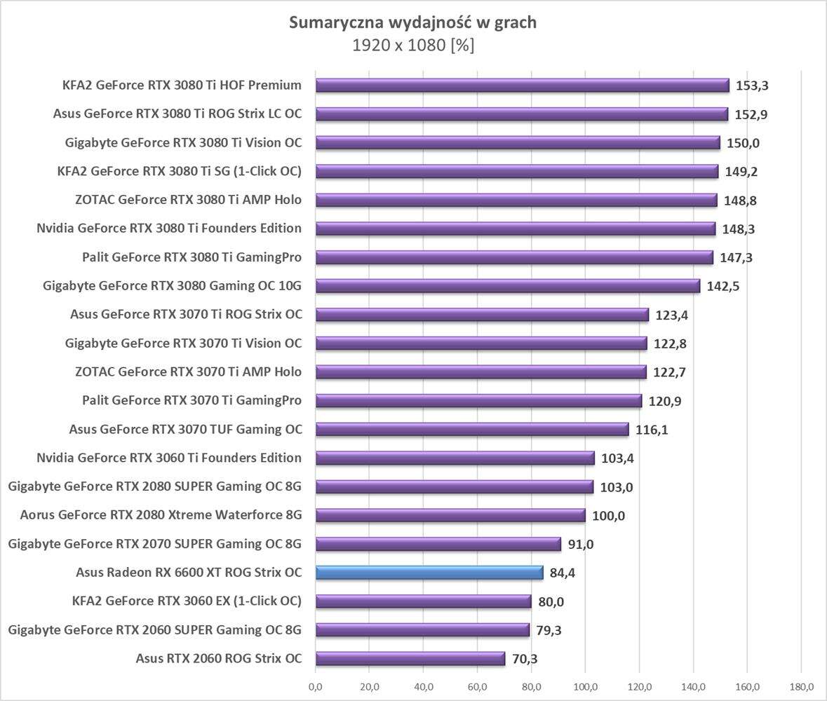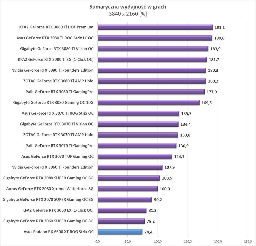 Sumaryczna wydajność Asus Radeon RX 6600 XT ROG Strix OC