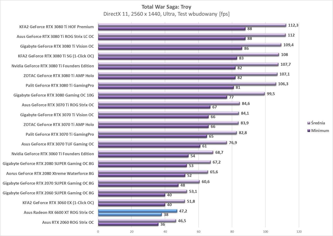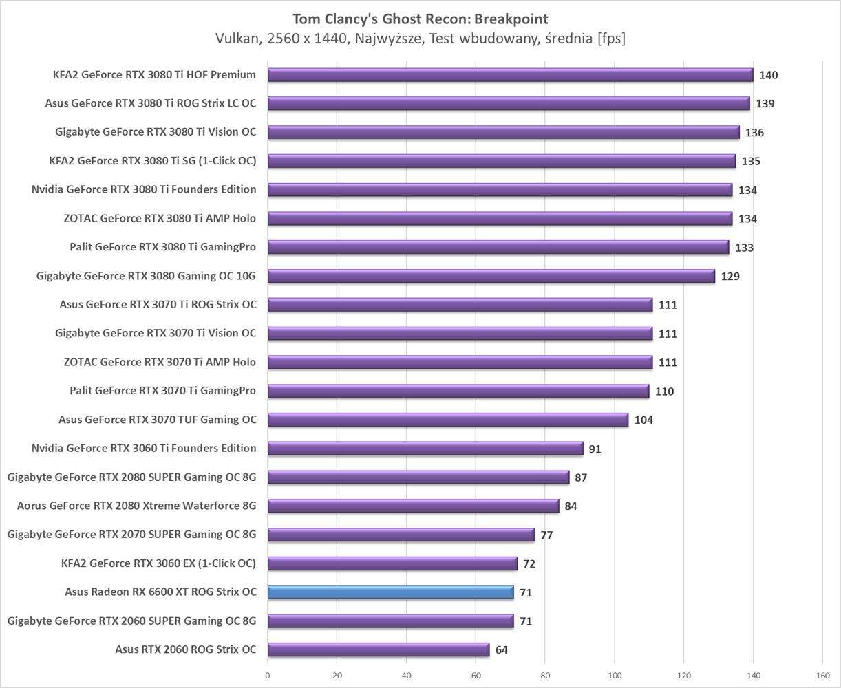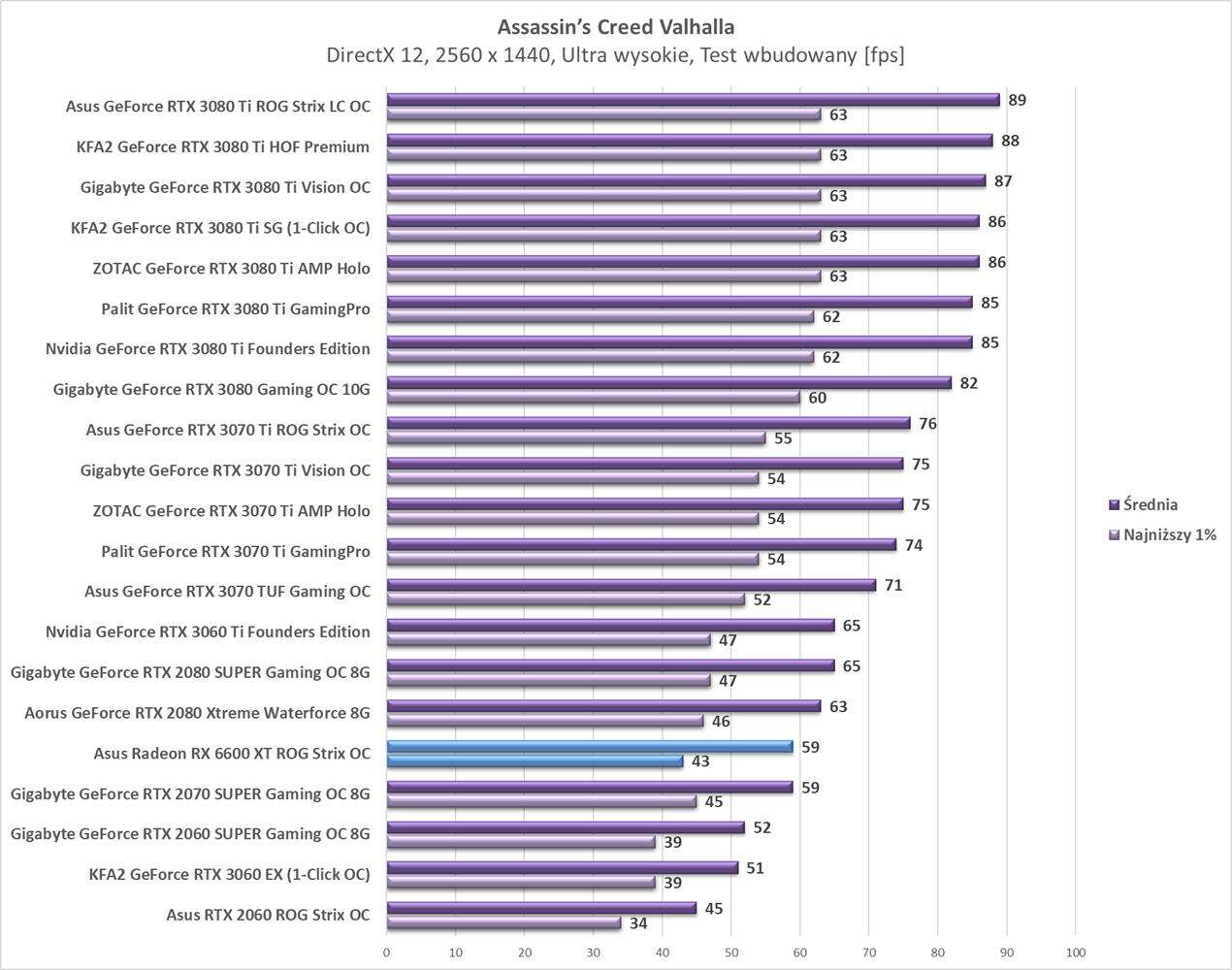 Testy Asus Radeon RX 6600 XT ROG Strix OC w rozdzielczości 2560 x 1440