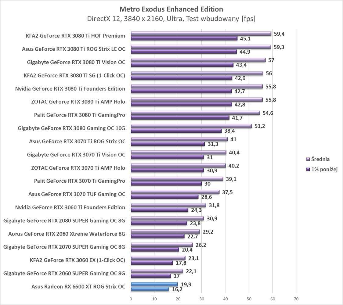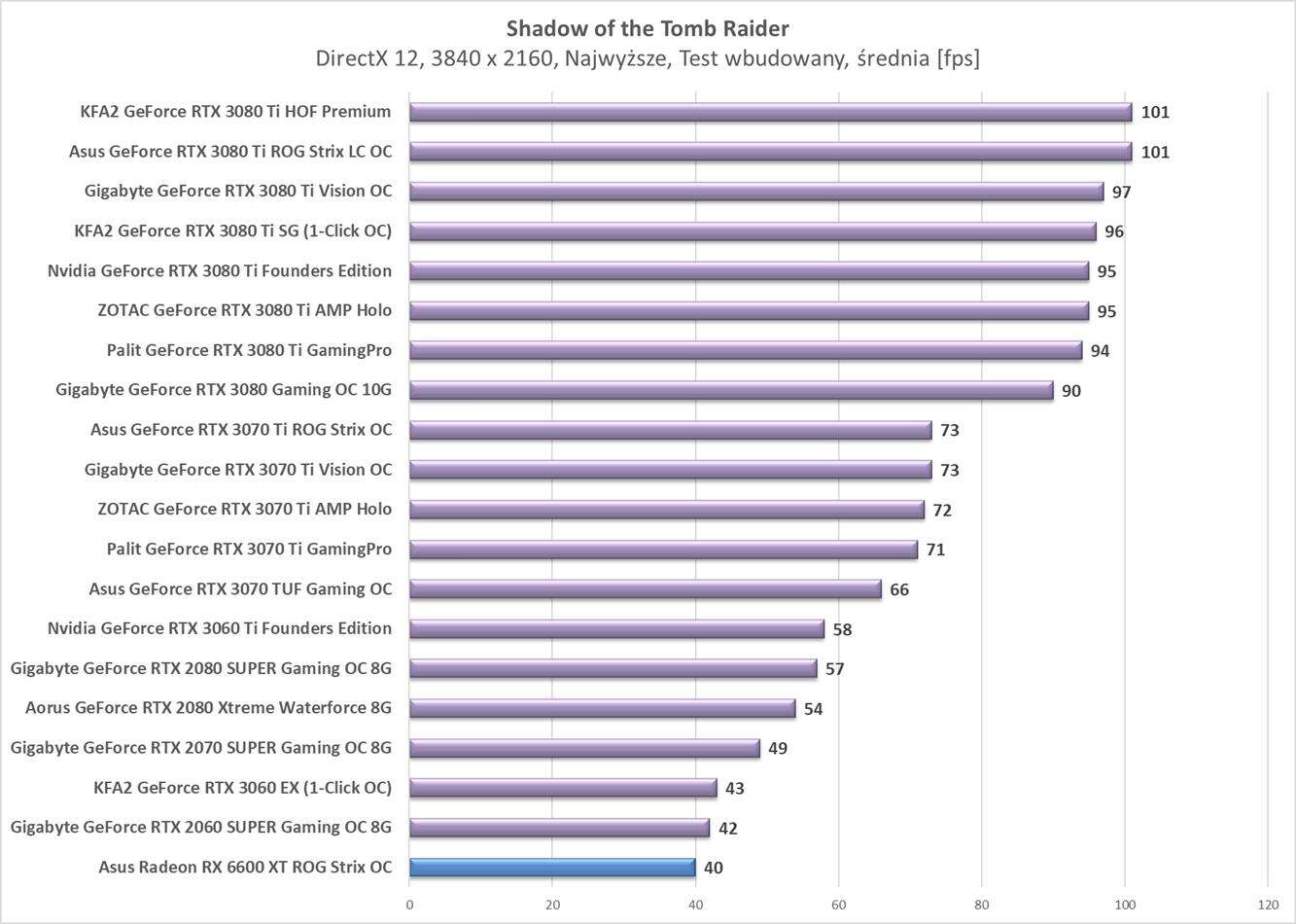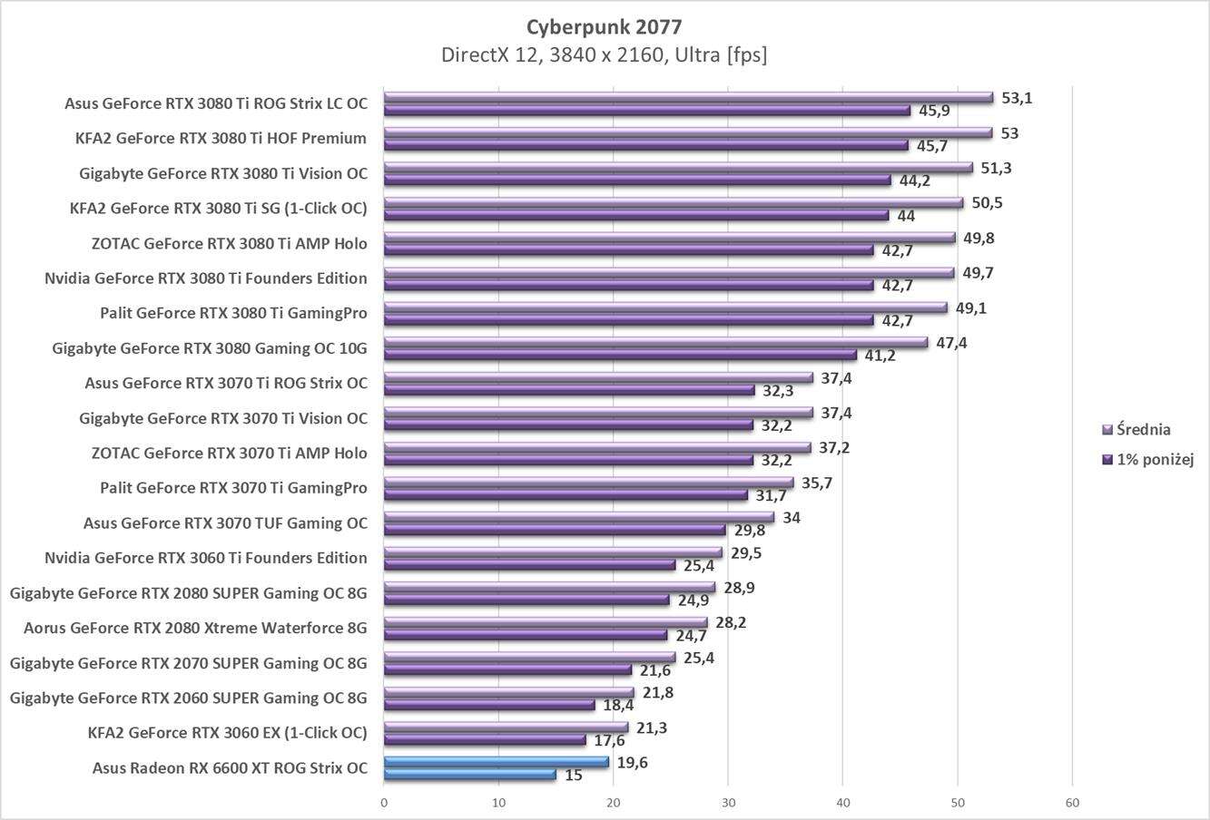 Testy Asus Radeon RX 6600 XT ROG Strix OC w rozdzielczości 3840 x 2160