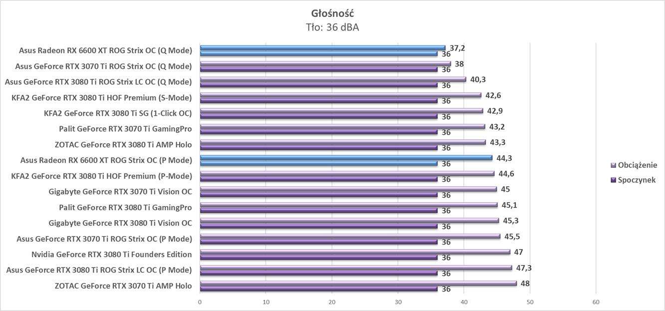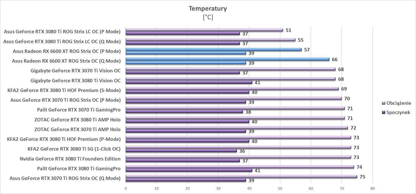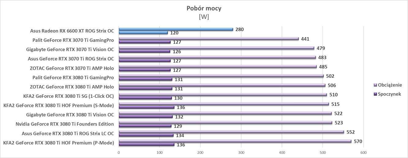 Temperatury, głośność, pobór mocy Asus Radeon RX 6600 XT ROG Strix OC