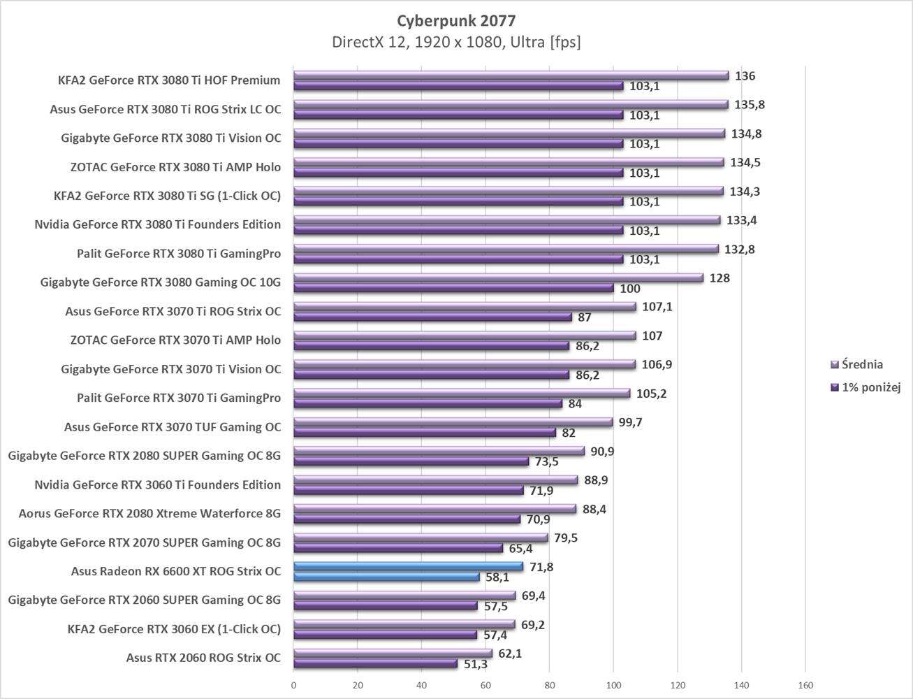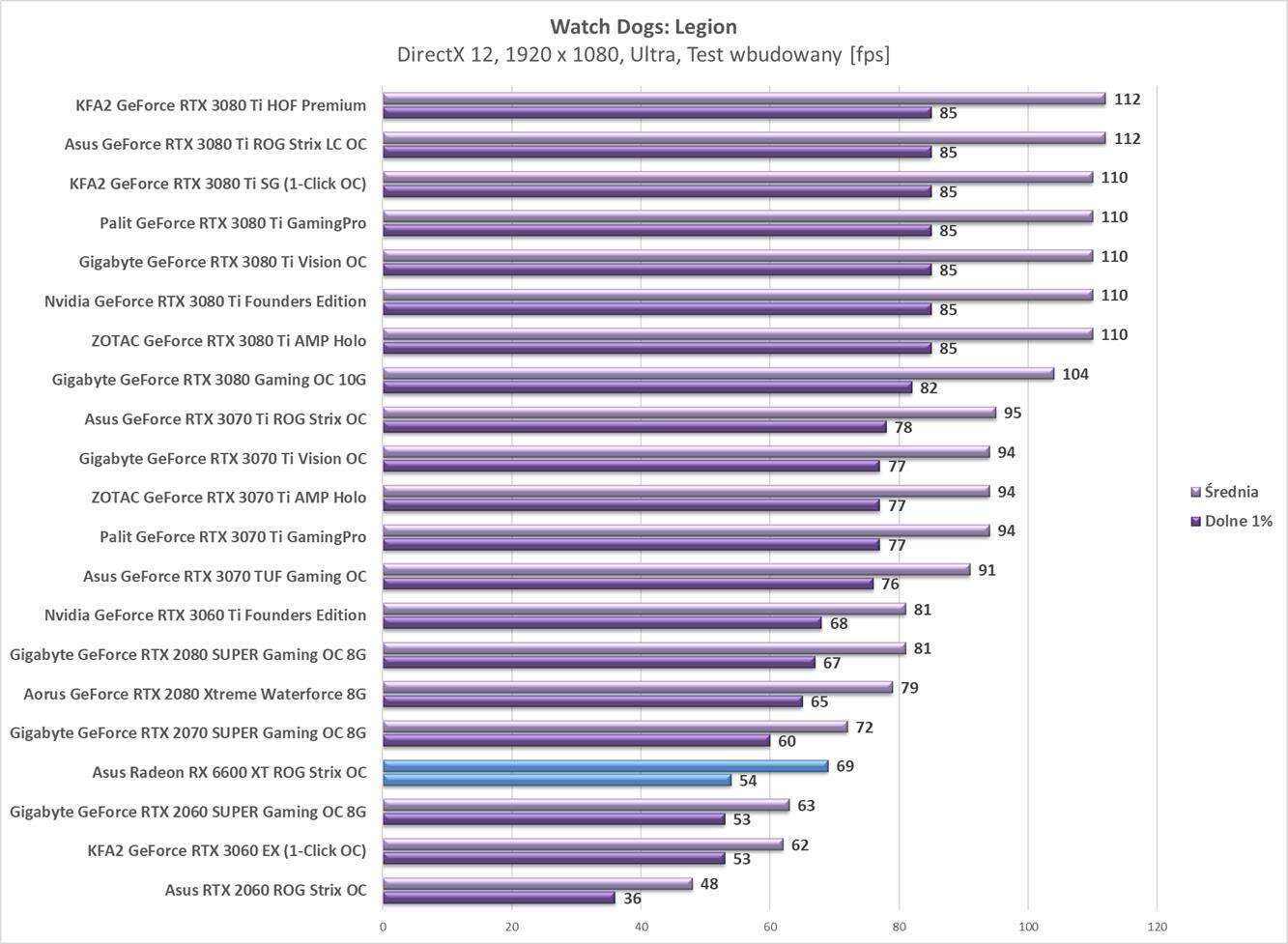 Testy Asus Radeon RX 6600 XT ROG Strix OC w rozdzielczości 1920 x 1080