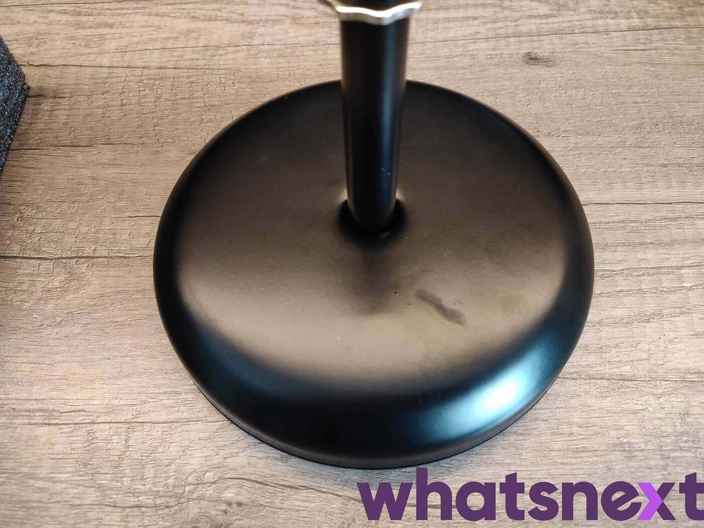 Proces składania wszystkiego do kupy jest idealną okazją, żeby zapoznać się ze świetnymi materiałami, które wykorzystał Trust. Plastik jest tutaj obecny tylko w nielicznych miejscach (przewód USB, pokrętło, koszyczek), bo większość pozostałych elementów buduje wyłącznie solidny metal. Przez to właśnie Trust Rudox waży tak wiele, ale spokojnie – nie zniszczy Wam mebli, dzięki wspomnianej gumowej nakładce. Jeśli będziecie chcieli, ten mikrofon w zamontujecie też na kompatybilnym z ⅝-calowym gwintem ramieniu, więc producent nie ograniczy Was tylko do takiego stojaka.