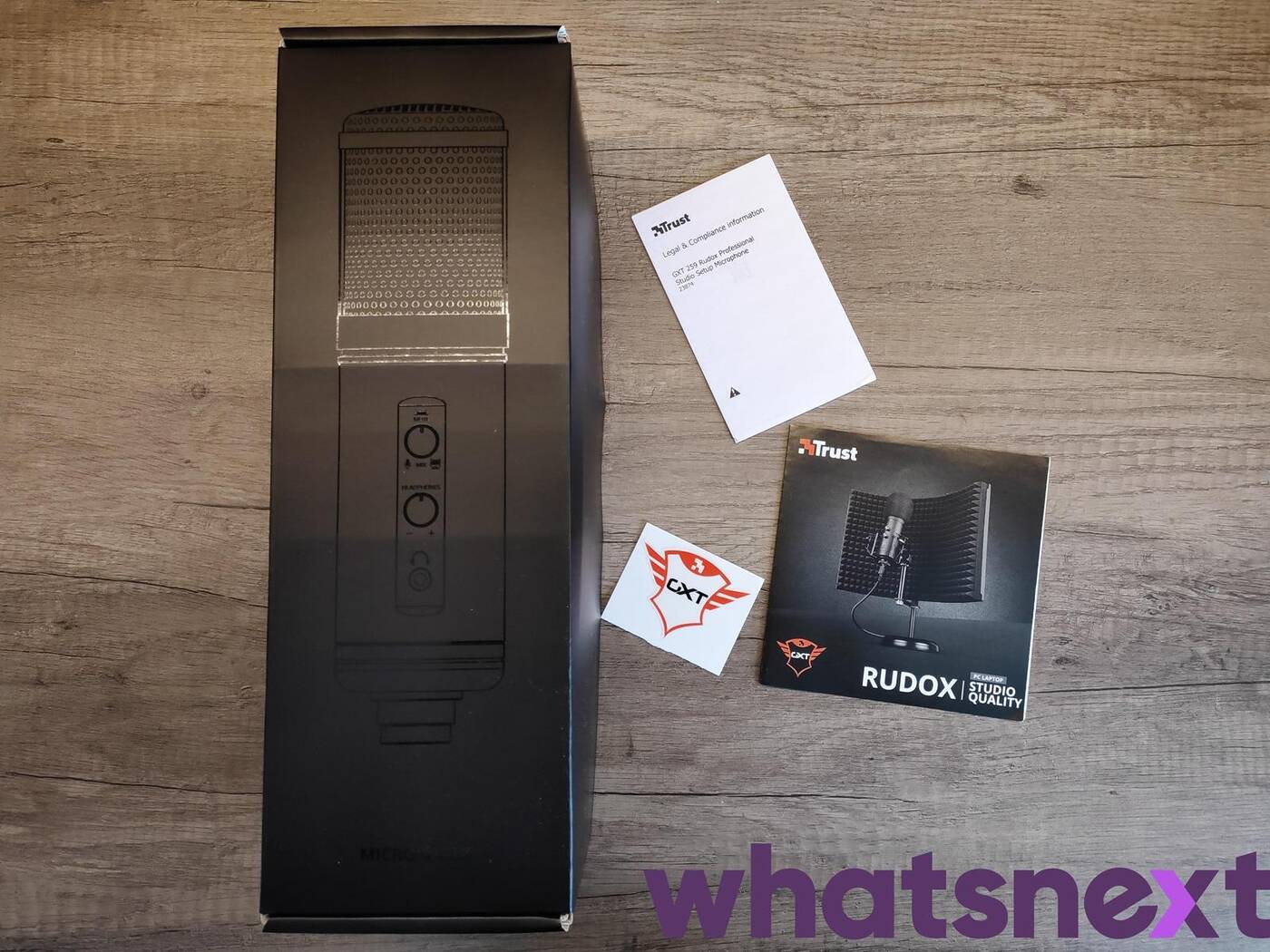 Już na samym początku widać, że mikrofon Trust Rudox (GXT 259) jest dla producenta najważniejszym modelem w ofercie i rzeczywiście wszystkie inne ustępują mu zaawansowaniem. Jego rozpakowywanie przypomina przygodę charakterystyczną dla całego zestawu komputerowego, a nie części peryferiów, ale cała masa pianek i osłon nie znalazła się tutaj bez przyczyny. Zestaw jest bowiem ogromny.