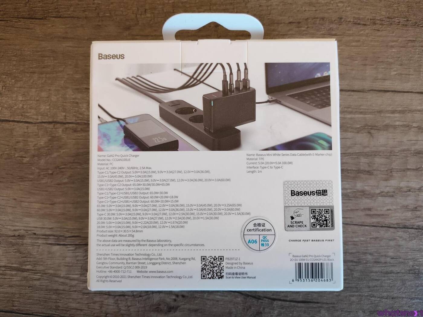 Pudełko i wyposażenie Baseus GaN2 Pro
