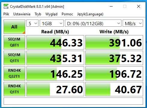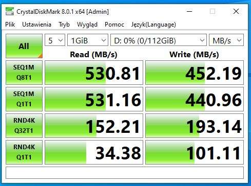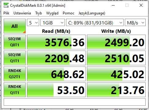 Pozostała jeszcze kwestia temperatury dysku ukrytej pod największym z radiatorów (górnym). Tutaj zanotowałem 64°C i 80°C (obecne są dwa czujniki), czyli wyniki są lepsze niż w przypadku zwykłej blaszki, która montowana jest w większości płyt głównych.