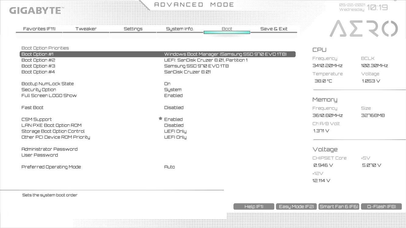 Maksymalna prędkość pamięci RAM to 5400 MHz, a ich pojemność 128 GB (4 moduły po 32 GB). Nie zabrakło obsługi profili XMP, więc pamięci RAM łatwo odpowiednio ustawicie w BIOS.