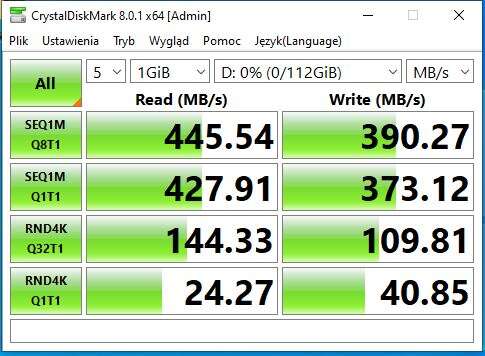 Dysk NVMe ukryłem pod najwyżej położonym radiatorem. Podczas obciążenia programem CrystalDiskMark maksymalnie zanotowałem 65°C i 90°C (obecne są dwa czujniki). Są to więc wyniki dosyć bliskie innym płytom głównym – nie wyróżniają się zbytnio.