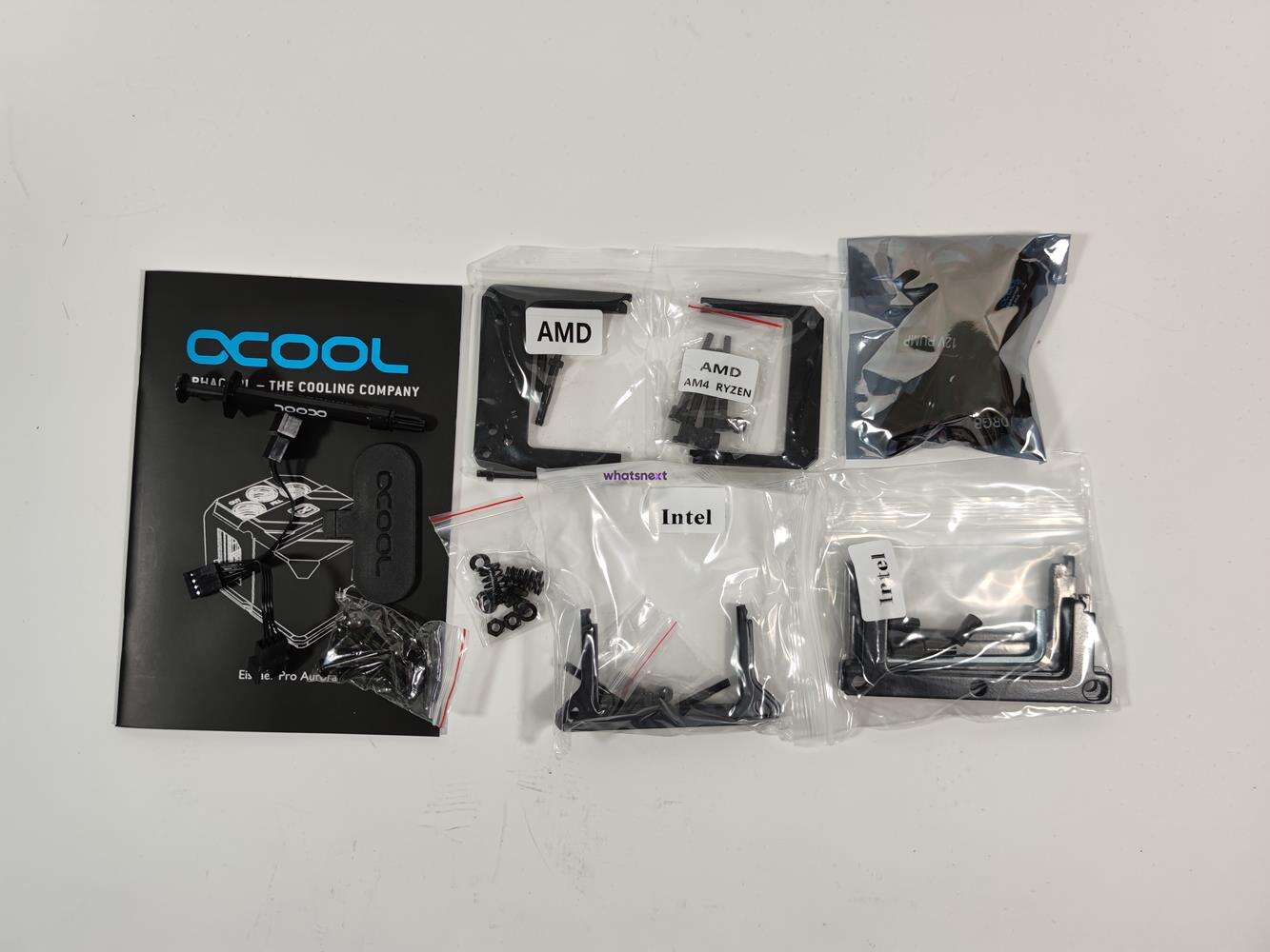 Wraz z chłodzeniem otryzmujemy instrukcję, zestaw montażowy, przejściówkę 2x 4pin -> 1x 4 pin, kontroler ze złączem 3 pin, adapter 5V ARGB oraz tubkę pasty. Pompkę wraz z podświetleniem możecie więc podłączyć bezpośrednio do złącza SATA od zasilacza. Tym drugim możecie też sterować poprzez płytę główną albo wspomniany kontroler. Plusem jest też dołączona tubka pasty. Sam montaż jest dosyć prosty, a instrukcja dobrze go wyjaśnia. Gwarancja wynosi 2 lata.