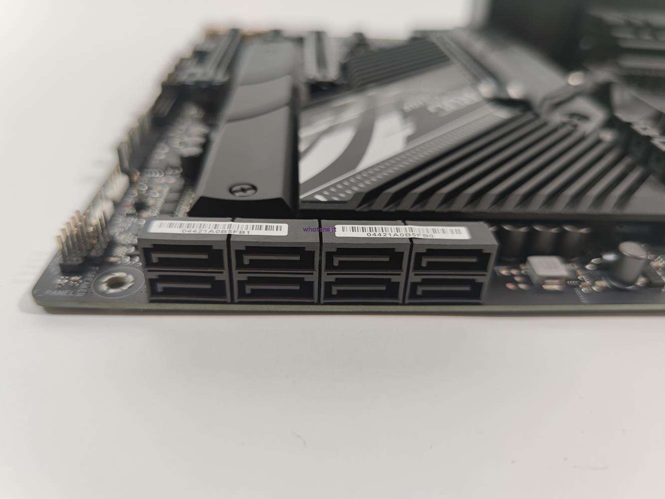 Płyta oferuje dwa złącza na dyski M.2. Oba mają radiatory, które powinny dobrze odprowadzać z nich ciepło. Górne złącze działa w zależności od zastosowanego procesora – do PCI-E 4.0 x4 oraz SATA. Dolne wspiera dyski PCI-E 4.0 x4 oraz SATA. W obu przypadkach zmieszczą się konstrukcje 2242/2260/2280/22110. Na płycie znajduje się też osiem złącze SATA 6 Gb/s.