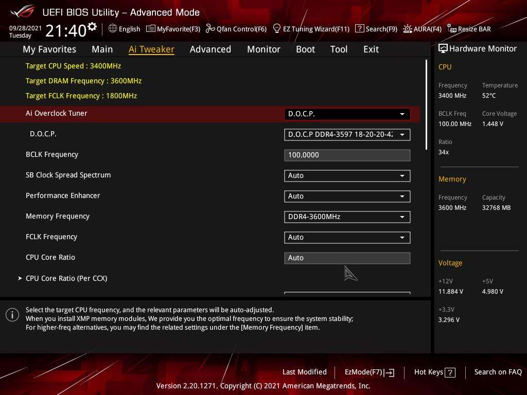 BIOS Asusa jest jak zawsze prosty i w miarę przejrzysty. Jest tryb Ez Mode, w którym łatwo ustawicie choćby pamięci RAM. Tutaj zamiast profili XMP macie D.O.C.P., ale to również w moim przypadku zadziałało bez problemów. W trybie zaawansowanym łatwo podkręcicie procesor czy zmienicie mnóstwo innych dostępnych opcji. Nie ma problemów z nawigacją czy zapisywaniem profili użytkownika. Generalnie więc całość oceniam więc pozytywnie.