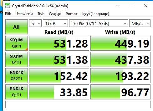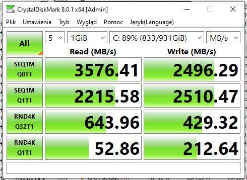 W przypadku dysku zamontowanego pod radiatorem pod obciążeniem CrystalDiskMark zanotowałem 68°C i 88°C, czyli dosyć podobne do konkurencji.