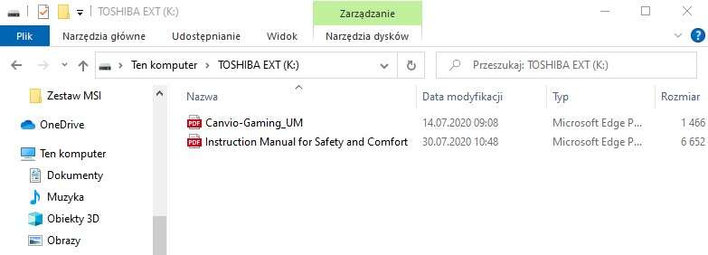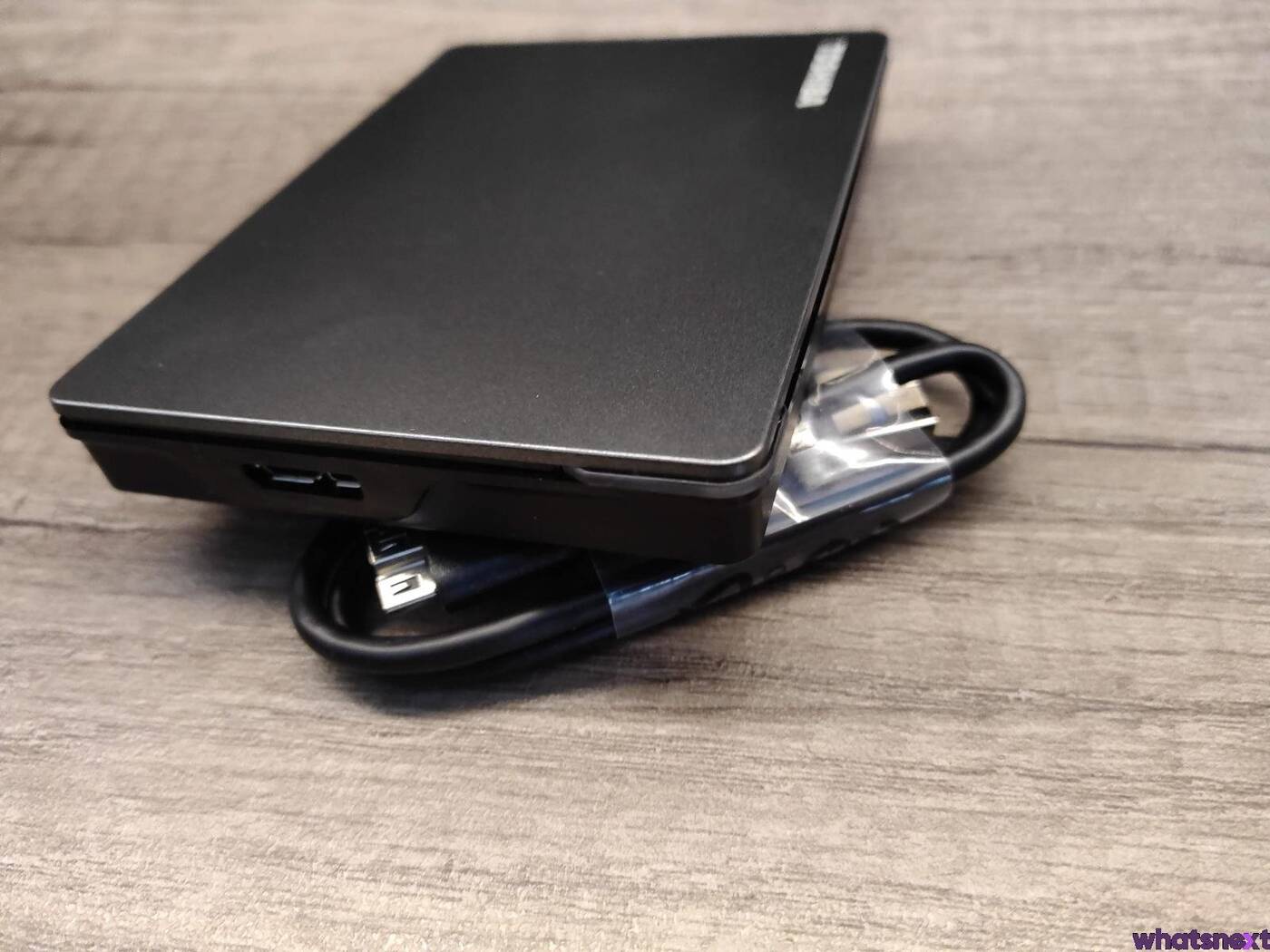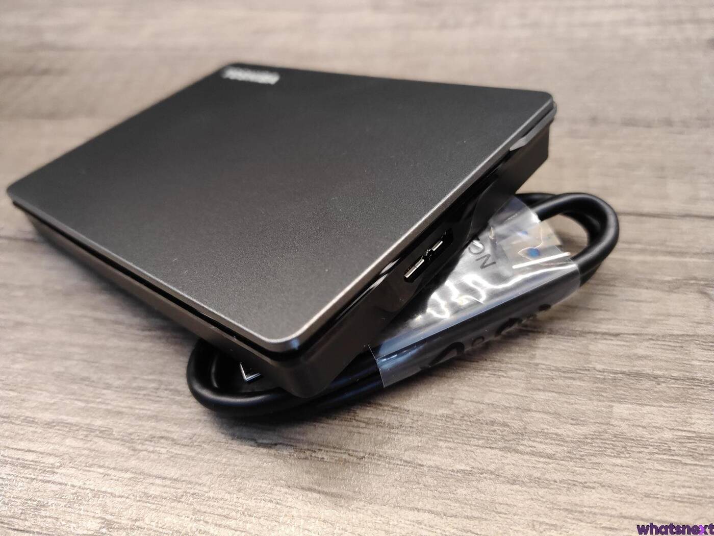 Wykonanie Canvio Gaming z pozoru jest dobre, a sam wygląd przyjemny dla oka. Trwałość tego dysku, to już jednak zupełnie inna bajka, bo wystarczy zgnieść dysk w dłoni, aby plastiki zaczęły trzeszczeć i nieco się wyginać. Ponadto samo podważenie grafitowego ukazuje naszym oczom niewielką szparę, choć o zerwaniu go nie ma mowy. Do dołączonego w zestawie około 45-centymetrowego przewodu USB 3.2 generacji 1 (Type-A do Micro-B) w gumowym oplocie trudno się z kolei doczepić. Ot prosty przewód, który oprócz dysku i książeczki informacyjnej jest jedynym elementem do znalezienia w skromnym kartonowym opakowaniu, które dba o Canvio Gaming w transporcie za sprawą folii i tekturowych wyłożeń.