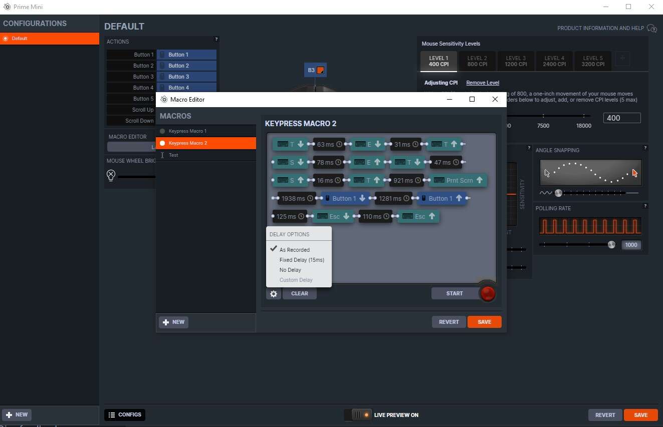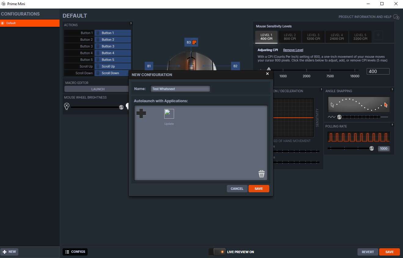 Ta pozwala nam zaktualizować firmware, dopiąć profile do poszczególnych gier i ustawić myszkę idealnie „pod nas”, co dotyczy zarówno czułości na pięciu poziomach (100-18000 DPI), jak i tradycyjnych pułapów częstotliwości odświeżania, czy być może najciekawsze – manipulacji natężeniem predykcji i zmniejszeniem prędkości sensora w kolejno pierwszych i ostatnich fazach ruchu myszką.