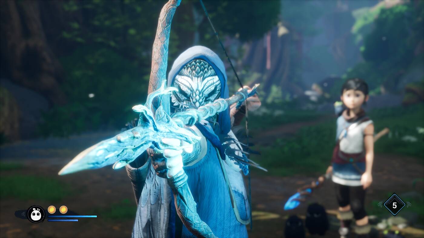 Produkcja w wersji PS5 wykorzystuje kontroler DualSense tylko do tego, aby naciąganie cięciwy łuku powodowało mały opór, a silny atak wywoływał identyczny efekt. Wykorzystanie pada w tej kwestii jest minimalne i szkoda, że nie pokuszono się o wyciśnięcie z niego więcej. Dobra wiadomość jest taka, że Kena wykorzystuje system podpowiedzi dostępny z menu konsoli. Jeśli jakiś pojedynek czy zagadka środowiskowa sprawi, że utkniecie w miejscu, nie musicie odpalać YouTube, a wystarczy kilka kliknięć i możecie obejrzeć przygotowane przez twórców wideo objaśniające, jak zaliczyć dany etap.