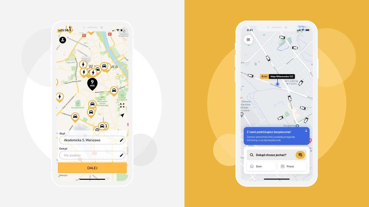 Ogromnym zmianom uległ główny ekran z mapą, na który użytkownik trafia zaraz po zalogowaniu. Zamiast natłoku pinów symbolizujących dostępne samochody, widzi estetyczne grafiki aut. Może od razu przejść do wskazania adresu docelowego. Nie jest atakowany licznymi komunikatami w postaci pop-uów, które musi zamykać, tylko widzi jeden, zwijany baner informacyjny. W wersji 5.0 Aplikacji Pasażera na Androidzie użytkownicy mogą zobaczyć nowe ekrany na całej ścieżce od momentu rejestracji/logowania do kliknięcia przycisku “Zamów przejazd”.