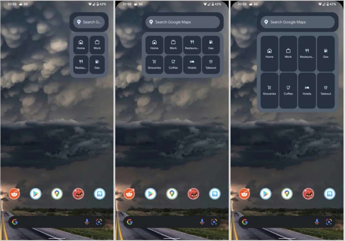 Na Androidzie 12 będzie można dostosować widżet do stylu systemu i spersonalizować go pod siebie. Wizualnie różnić się on będzie od wersji na Androida 11, ale pod względem funkcjonalności obie wersje będą takie same. Użytkownik będzie mógł umieścić tam nawigację do wybranych przez siebie miejsc, np. do domu czy pracy, a także mieć szybki wgląd we wskazówki dotyczące dojazdu do różnych punktów. Wszystko bez konieczności otwierania pełnej aplikacji.
