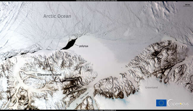 Naukowcy zajmujący się kontrolą pokrywy lodowej na terenie Arktyki natrafili na sporych rozmiarów dziurę znajdującą się w obrębie tzw. ostatniego obszaru lodu. Ta tzw. połynia znajduje się w pobliżu Wyspy Ellesmere’a.