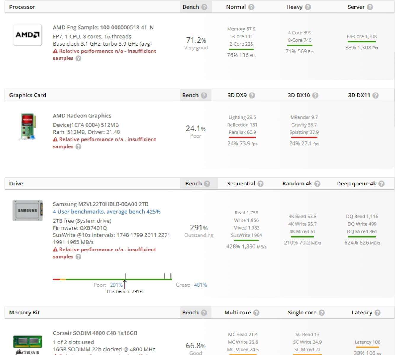 W bazie danych UserBenchmark pojawił się pierwszy Ryzen 6000 pod numerem OPN 100-000000518-41_N w platformie testowej Xenomorph firmy Corsair, będącej zapewne miniPC. Nam też to nic nie mówi, ale wzmianka o gnieździe FP7 jasno wskazuje, że to CPU nowej generacji, związany właśnie z procesorami AMD Ryzen 6000.