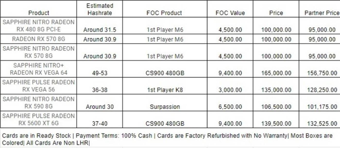 Ta firma sprzedaje 4/5-letnie, odnowione karty graficzne bez żadnej gwarancji, bez pudełek i w cenie, która wywołuje uśmiech politowania. Mowa o modelach takich, jak: Radeon RX 480, RX 570, RX 590, RX 5600 XT i RX Vega 64, z czego za ten pierwszy przyjdzie nam zapłacić całe 100000 PKR, czyli 2350 zł. To o ponad 1000 zł więcej, niż płaciliśmy w dniu jej premiery.