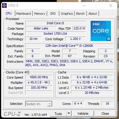Intel Core i5-12600K to konstrukcja na LGA1700, więc ma całkowicie nową podstawkę. Na pewno wadą tego rozwiązania jest konieczność zmiany chłodzeń na nowe, co na pewno będzie sprawiało na początku sporo problemów. Procesor wykonany jest w procesie technologicznym Intel 7 (10 nm Enhanced SuperFin). Maksymalna temperatura CPU to 100°C.