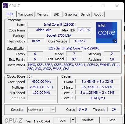 Intel Core i9-12900K ma 30 MB Intel Smart Cache L3 oraz 14 MB Cache L2. Jest też zintegrowana karta graficzna Intel UHD 770, ale na rynek trafi też model KF. Producent zapewnia wsparcie dla tych samych pamięci, co w przypadku poprzednika i oczywiście mamy też obsługę 16 linii PCI-E 5.0.