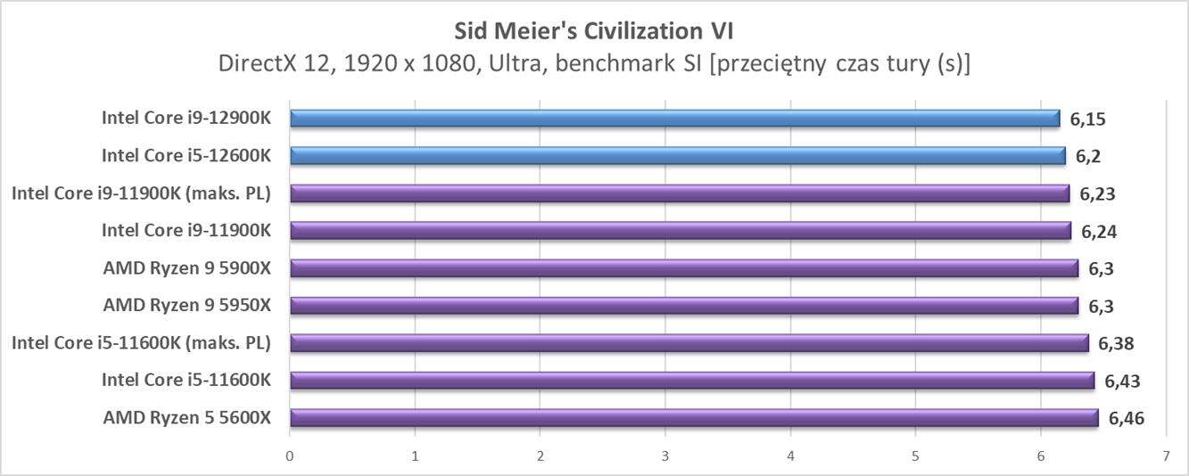 Kolejna część znanej strategii sygnowanej nazwiskiem Sid Meier’s-a, jedna z pierwszych strategii 4X. Wciąż mocno rozwijana przez twórców i mająca wiele dodatków, cieszy się wielką sławą wśród strategów. W szóstej odsłonie twórcy poszli w bardziej bajkową stylistykę graficzną i jasne kolory, aby móc odzwierciedlać nastroje panujące w poszczególnych krajach. W testach wykorzystałem wbudowane w grę dwa benchmarki – SI i Grafika. Wybrałem też rozdzielczość 1920 x 1080 i ustawienia ultra.