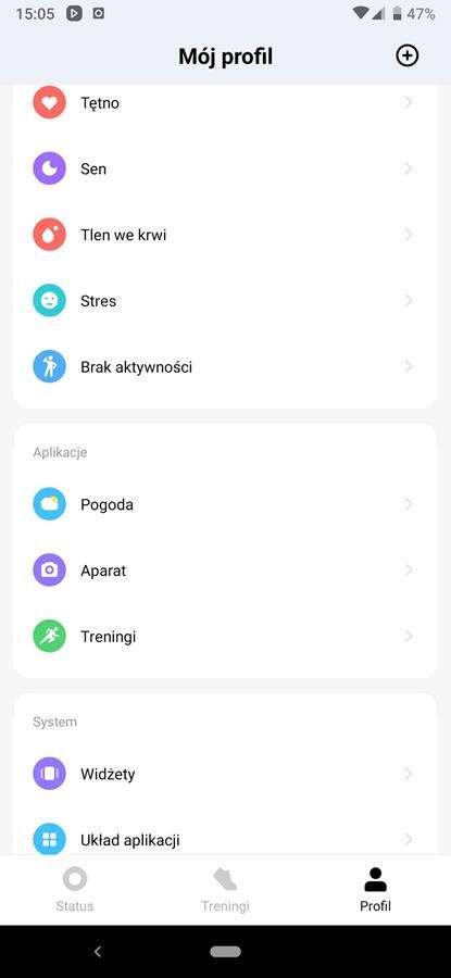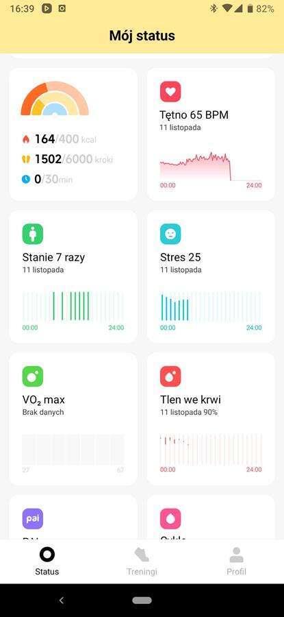 Chociaż Redmi Watch 2 Lite nazwiemy prędzej smartwatchem, niż smartbandem, to producent zadbał o pokaźną liczbę trybów treningu. Mowa nie o kilkunastu, czy kilkudziesięciu, a ponad stu z rozgraniczeniem na całą masę tych specyficznych pokroju nawet konkretnego rodzaju tańca. Nie zabrakło też opcji latarki, „znajdź mój telefon”, budzika z wykorzystaniem wibracji, stopera, ćwiczeń oddechowych, minutnika, dobierania jasności na poziomie 1-6, opcji wybudzenia przy podnoszeniu, dostosowywania poszczególnych zakładek, trybu „nie przeszkadzaj”, przypominaniu o ruszeniu się po zbyt długim siedzeniu, sterowania muzyką, mierzenia VO2 max i ogólnego poziomu energii, realizowania planu PAI (te trzy pomiary nie zostały u mnie zrealizowane), śledzenia cyklu menstruacyjnego, czy nawet strzelania fotek z poziomu smartwatcha.