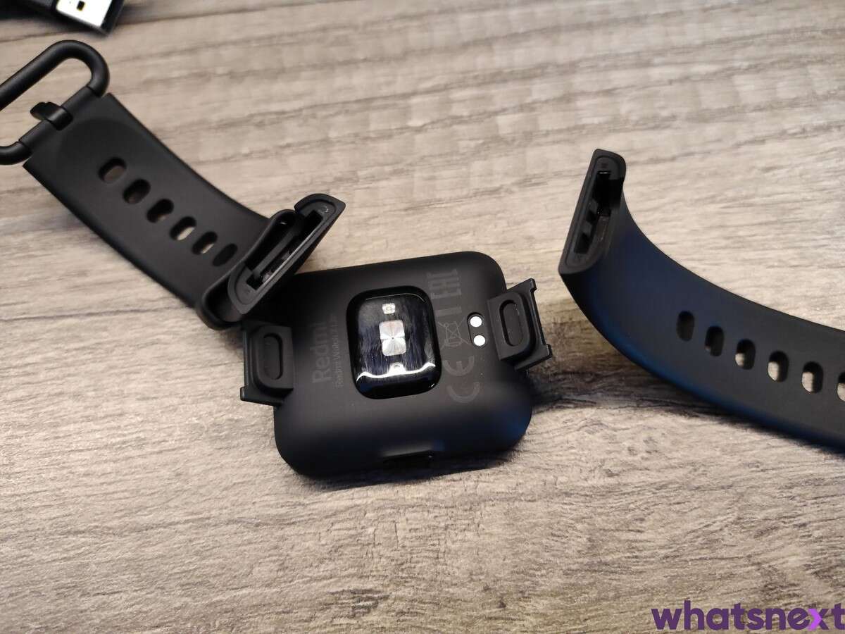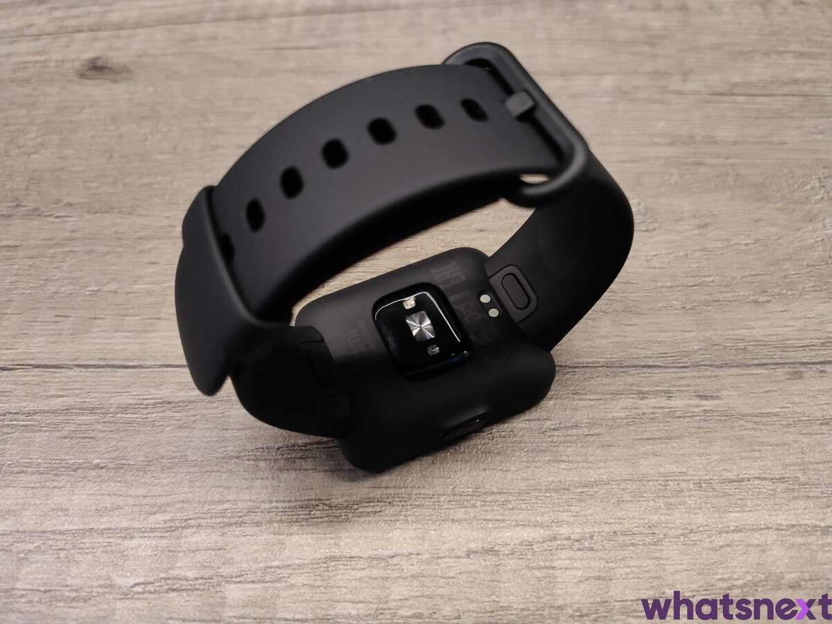Testy dotyczą czarnej, czyli tej najbardziej powszechnej i wszechstronnej wersji kolorystycznej, w której czarny kolor jest wszędzie – od pasków po główny moduł. Względem poprzednika Redmi Watch 2 Lite nie różni się w tych kwestiach prawie w ogóle i nawet rozmiar nie uległ specjalnie zmianie (41,2 x 35,3 x 10,7 mm vs 41 x 35 x 11,9 mm) przy zachowaniu tej samej wagi na poziomie 35 gramów. Podobnie postąpiono w myśl poszczególnych elementów, stawiając na wymienne paski o szerokości 2 cm z termoplastycznego poliuretanu. Uzupełnia ją antybakteryjna opaska, trzymająca pozostałość pasku w ryzach oraz nieco ciemniejsza sprzączką z twardego tworzywa sztucznego. Zdejmowanie tej opaski jest proste i sprowadza się do prostego przycisku.