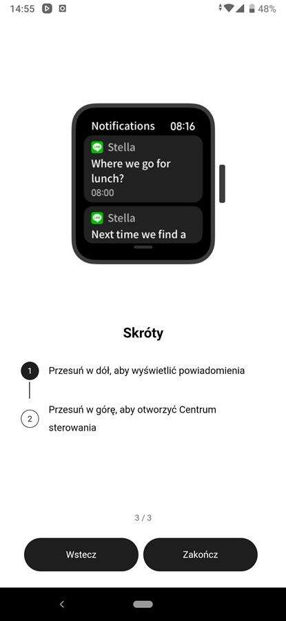 Jak to na zaawansowany smartwatch przystało, ta propozycja Xiaomi oferuje cały wachlarz możliwości charakterystycznych dla smartwatchów. Zapewnia więc opcję śledzenia poziomu stresu, kroków, spalonych kalorii, liczby wstań w ciągu dnia, tętna, natężenia tlenu we krwi, czy przebiegu snu, jak również możliwość podejrzenia pogody z poziomu smartfonu, przejrzenia dostarczanych na bieżąco powiadomień (wyświetlane są polskie znaki i nieco okrojone emotki), czy połączeń telefonicznych, które można odrzucać lub wyciszać. W tym celu musicie jednak zadbać o udzielenie szeregu pozwoleń dla aplikacji Xiaomi Wear.