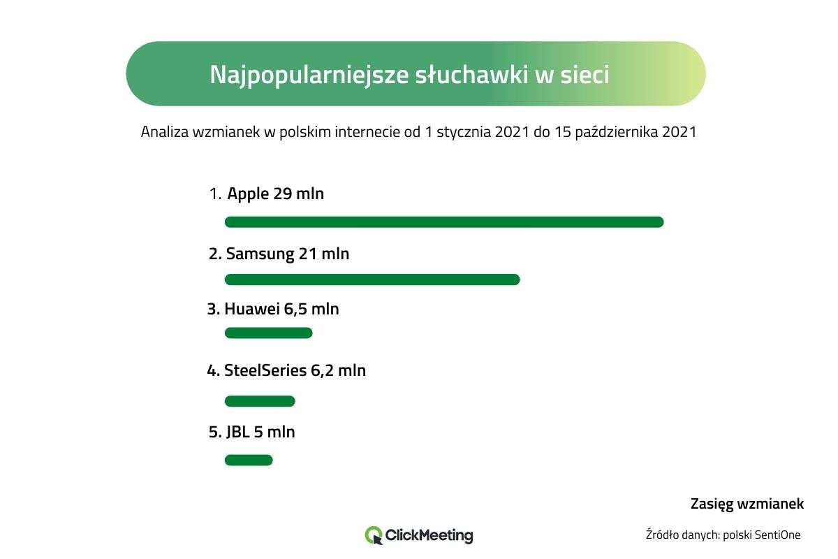 Platforma ClickMeeting przychodzi do nas po raz kolejny z zestawieniem najpopularniejszych sprzętów, z których Polacy korzystają podczas pracy zdalnej lub hybrydowej. Jakiś czas temu przedstawiono zestawienie kamerek internetowych i mikrofonów, a teraz przyszedł czas na słuchawki i headsety.