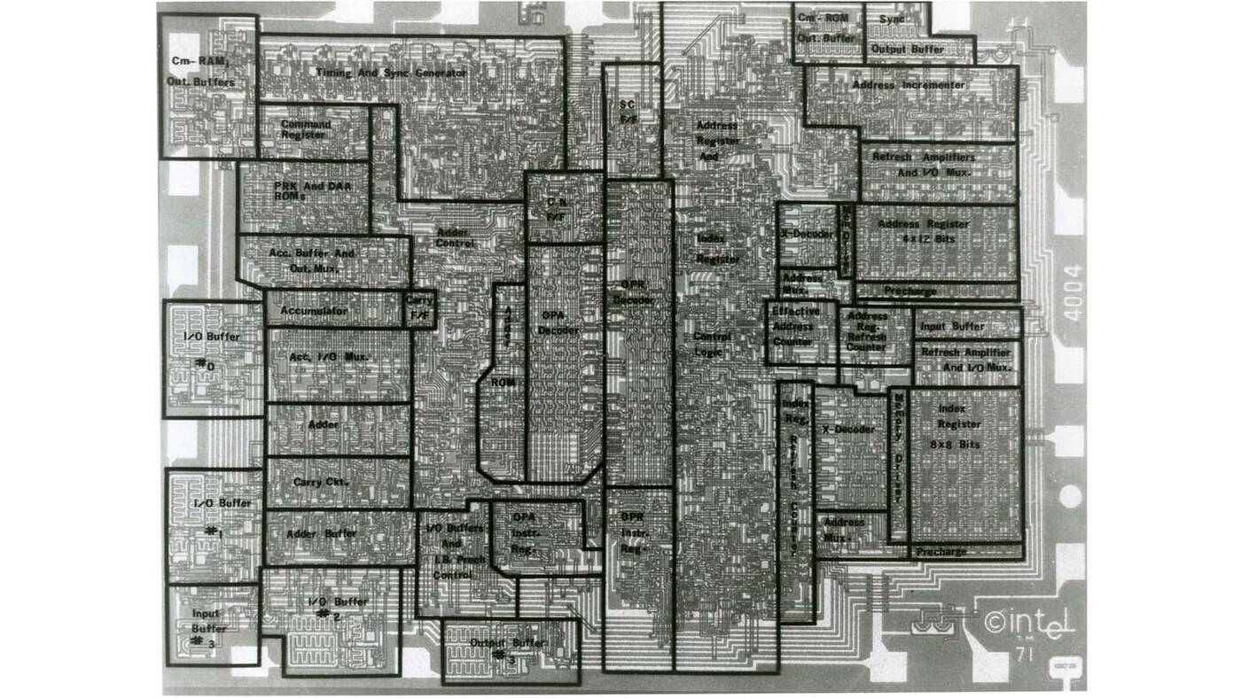 Wedle oficjalnego ogłoszenia firmy, Intel 4004 ustanowił również nową metodologię projektowania logiki losowej, na której były projektowane kolejne generacje mikroprocesorów… aż do dziś.