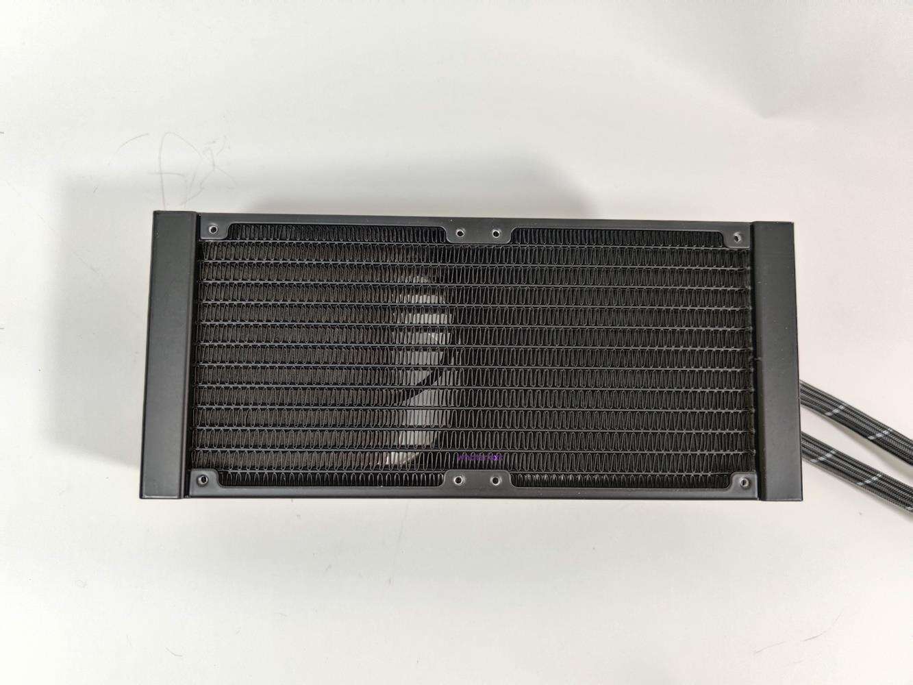 Chłodnica ma wymiary 277 x 120 x 38 mm. Tutaj należy pamiętać, że jest ona grubsza od konkurencyjnych rozwiązań więc całość wymaga tym samym więcej miejsca w obudowie. Na chłodnicy ani na całym AiO nie ma żadnego korka umożliwiającego uzupełenieni poziomu cieczy w układzie.
