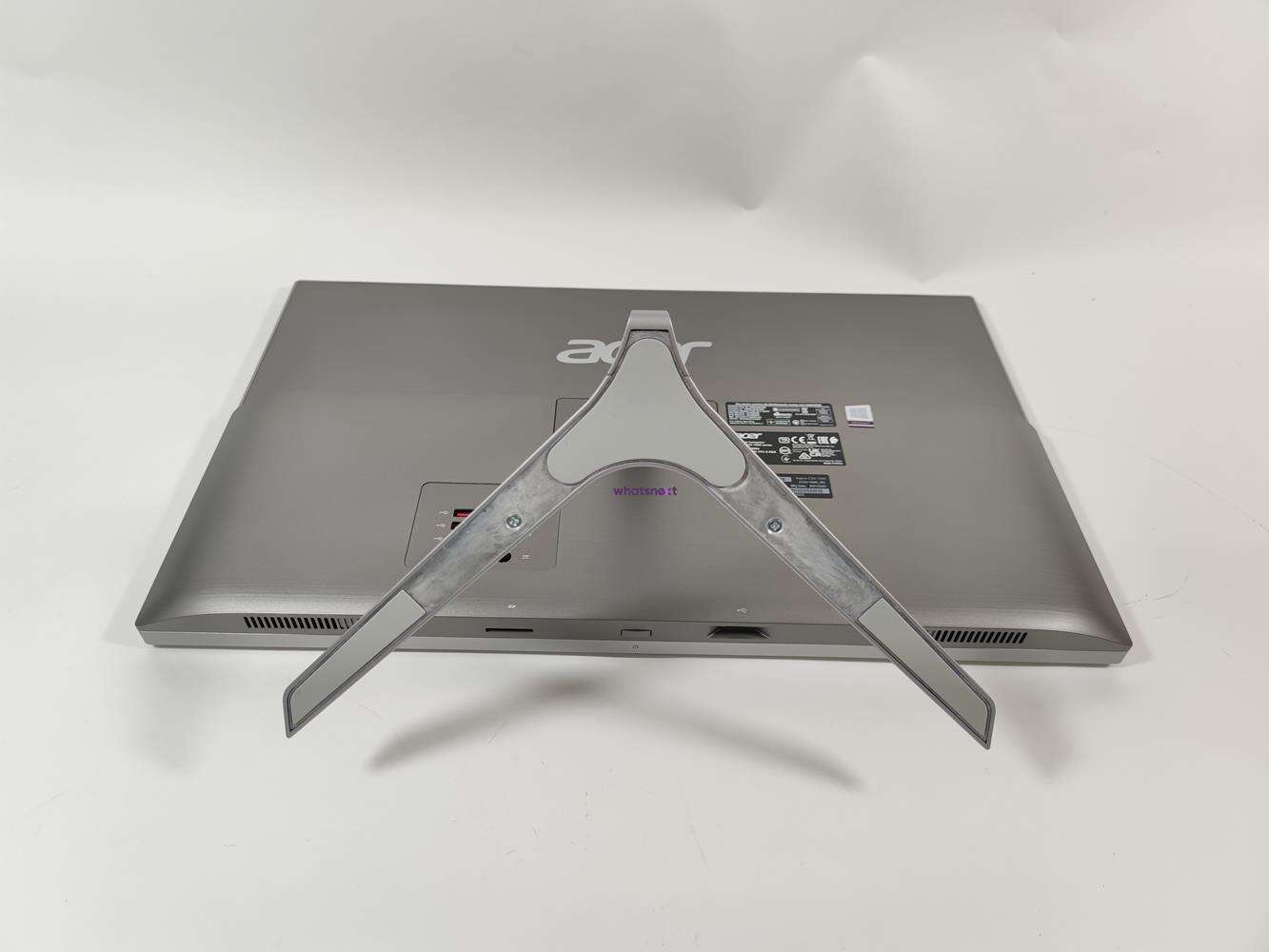 Pod względem wyglądu komputer wypada dobrze – po prostu wygląda jak srebrny monitor. Jest to na pewno eleganckie, a plusem są na pewno cienkie boczne ramki (ekran zajmuje 90,71% obudowy). Generalnie Acer Aspire C24-1650 po prostu wpasuje się w większość pomieszczeń i zbytnio nie będzie się wyróżniał. Tutaj wspomnę tylko jeszcze o grubości, która wynosi zaledwie 37,1 mm. Całość jest więc naprawdę cienka i potrzebuje mało miejsca.