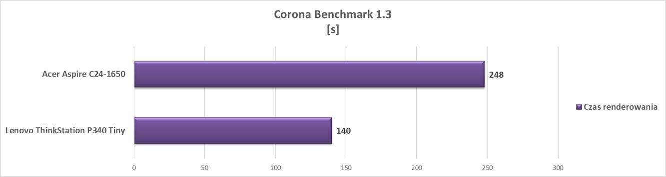 AiO stworzone jest do pracy biurowej, co widać po testach. Dobrze wypada on w takich benchmarkach jak PCMark 10 czy Speedometer 2.0, natomiast w pozostałych jest już słabiej. Oczywiście wpływ na to ma obecność tylko zintegrowanej karty graficznej, 8 GB pamięci RAM oraz 4-rdzeniowego i 8-wątkowego procesora. Plusem jest za to dobra wydajność jednordzeniowa, co potwierdza stosowny test Cinebench R23.