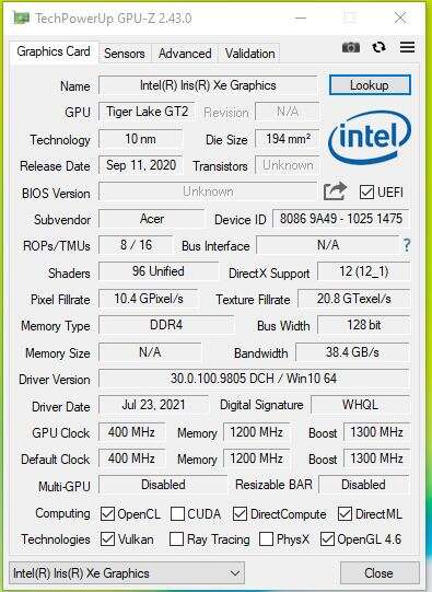 Na pokładzie znajduje się procesor Intel Core i5-1135G7. Jest to konstrukcja 4-rdzeniowa i 8-wątkowa o maksymalnym taktowaniu 4,20 GHz. Współpracuje on z jedną kością DDR4 8 GB o prędkości 3200 MHz i opóźnieniach CL22. Szkoda, że tutaj nie ma przynajmniej 16 GB, co często może okazać się przydatne. Producent deklaruje jednak możliwość rozbudowy do 32 GB. Karta graficzna to zintegrowany z procesorem model Intel Iris Xe, więc tutaj również szału nie ma. Dysk to 512 GB konstrukcja NVMe od Kingstona. Z ważnych rzeczy musze jeszcze wspomnieć o obecności WiFi 6 oraz Bluetooth 5.0 – łączność powinna więc stać na dobrym poziomie. Jest też wcześniej wspomniana karta ethernet 1 GbE (Realtek RTL8168/8111). Na pokładzie mamy też preinstalowany system Windows 10 Pro.