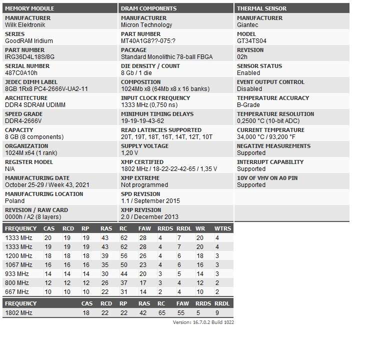 Test pamięci DDR4 Goodram IRDM RGB 2x 8 GB 3600 MHz CL18
