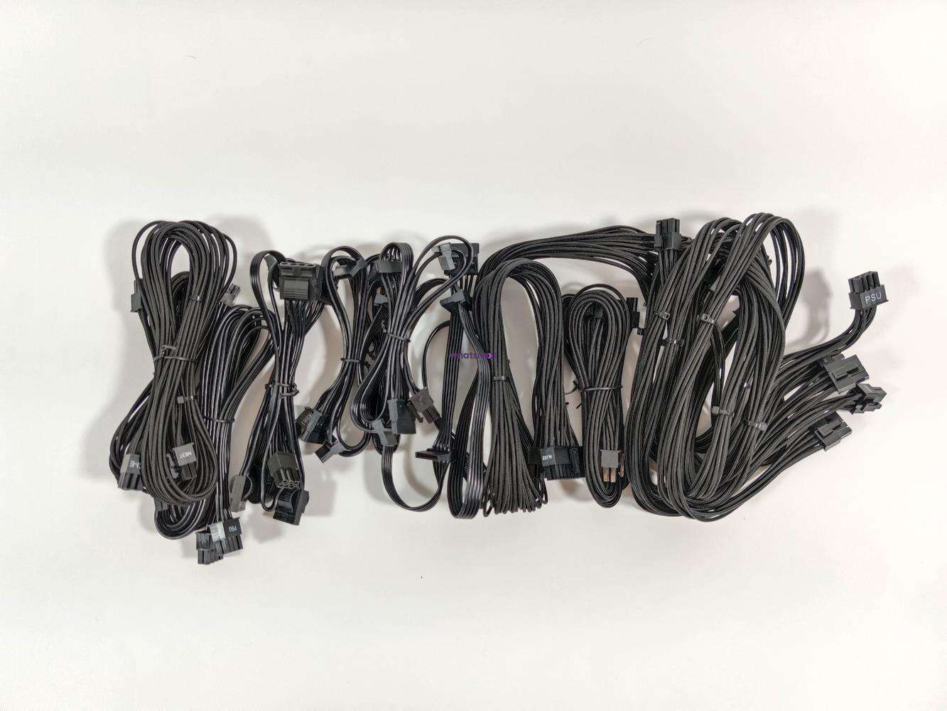 Do dyspozycji mamy jedną wtyczkę 20/24-pin, dwie CPU 4+4-pin, jedną PCI-E 12-pin, osiem PCI-E 6+2-pin, dwanaście SATA i sześć Mole. Jest też wspomniany wcześniej kabel ARGB. Okablowanie jest więc bogate i spokojnie wystarczy do podłączenia wymagających podzespołów. Ciekawostką jest 12-pinowe złącze PCI-E, które posłuży do bezpośredniego podłączenia najnowszych kart Founders Edition od Nvidii. Kable ATX, PCI-E i CPU mają osobne oploty każdego przewodu, SATA i Molex są po prostu płaskie.