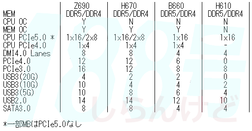 Wszystkie płyty główne oprócz tych z chipsetem H610, będą obsługiwały overclocking pamięci, czyli profile XMP 3.0. W kwestii PCIe 5.0 H670 nie ustąpi Z690, zapewniając dostęp do PCIe 5.0 x16 lub PCIe 5.0 2×8, podczas gdy pozostałe dwie będą oferować tylko pojedynczy slot PCIe 5.0 x16.