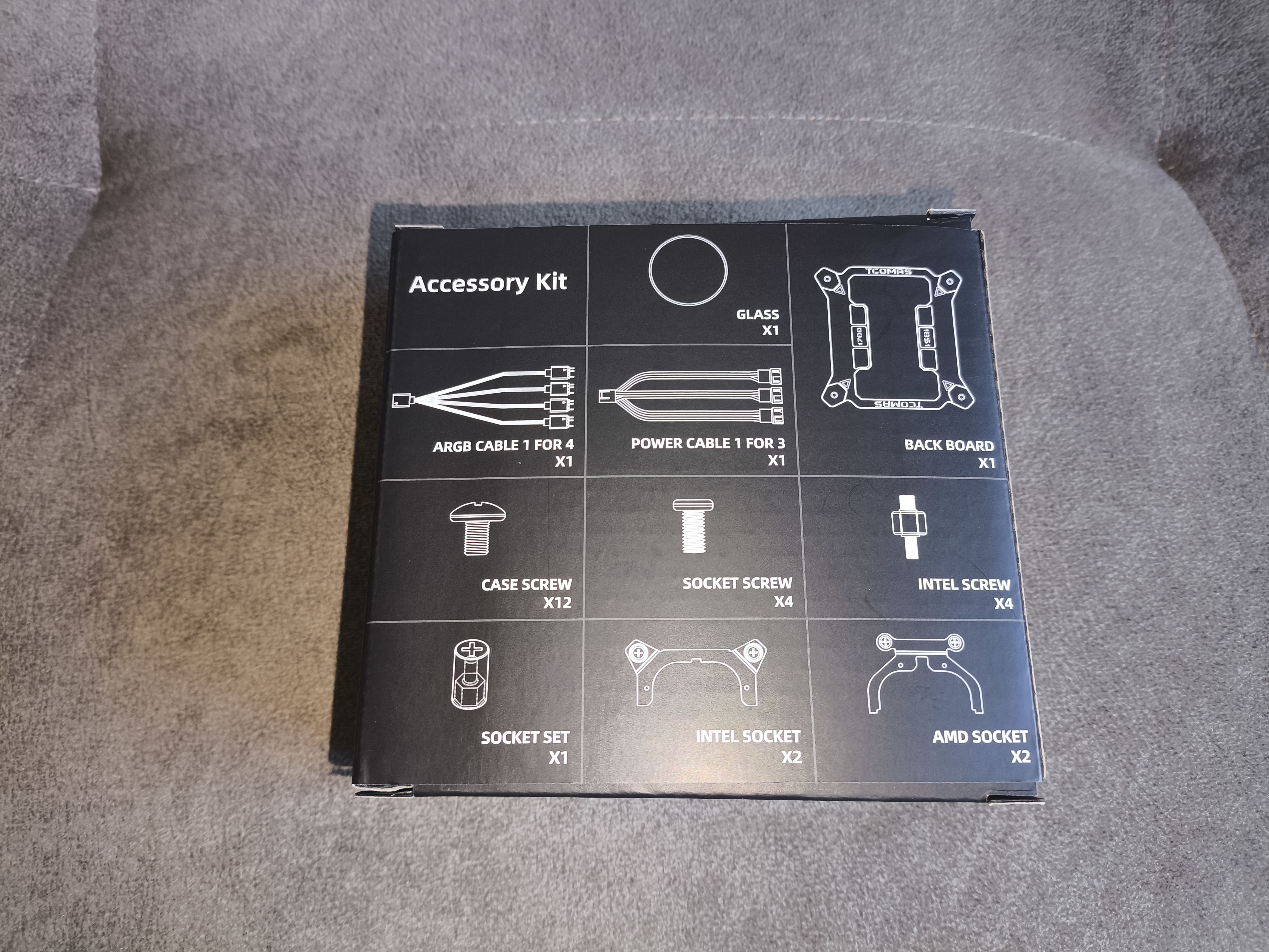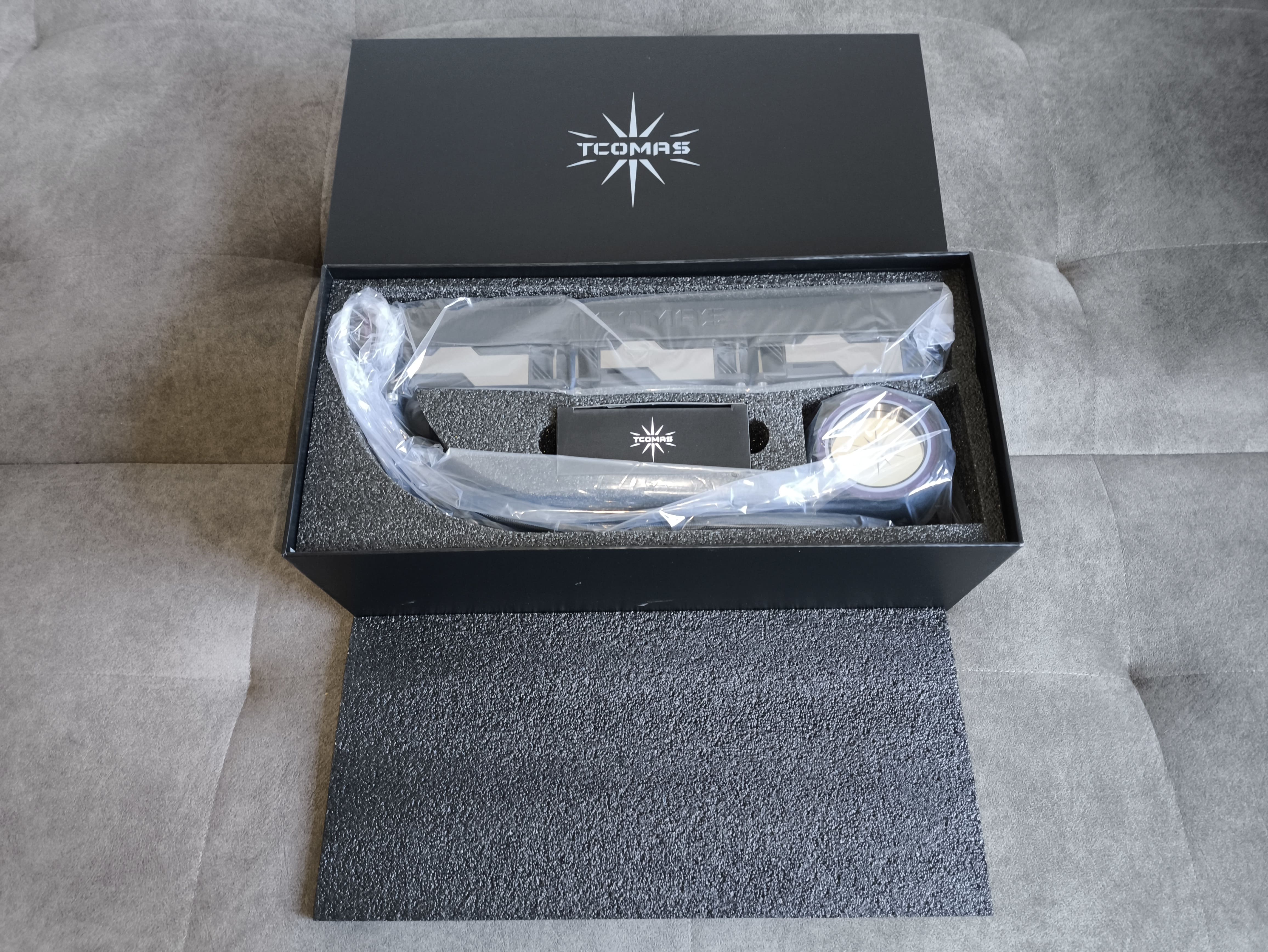 Chłodzenie TComas LA200 360 mm zapakowane jest w solidnym opakowaniu — wnętrze zabezpieczono iście po królewsku. Wyprofilowana pianka chroniąca radiator nie zdarza się często w konstrukcjach w tym przedziale cenowym. Zdarza się, ale to wciąż nie jest to norma. Blokopompa i pozostałe elementy także zostały skutecznie ochronione. Całościowo nadaje to temu chłodzeniu wrażenie produktu premium.